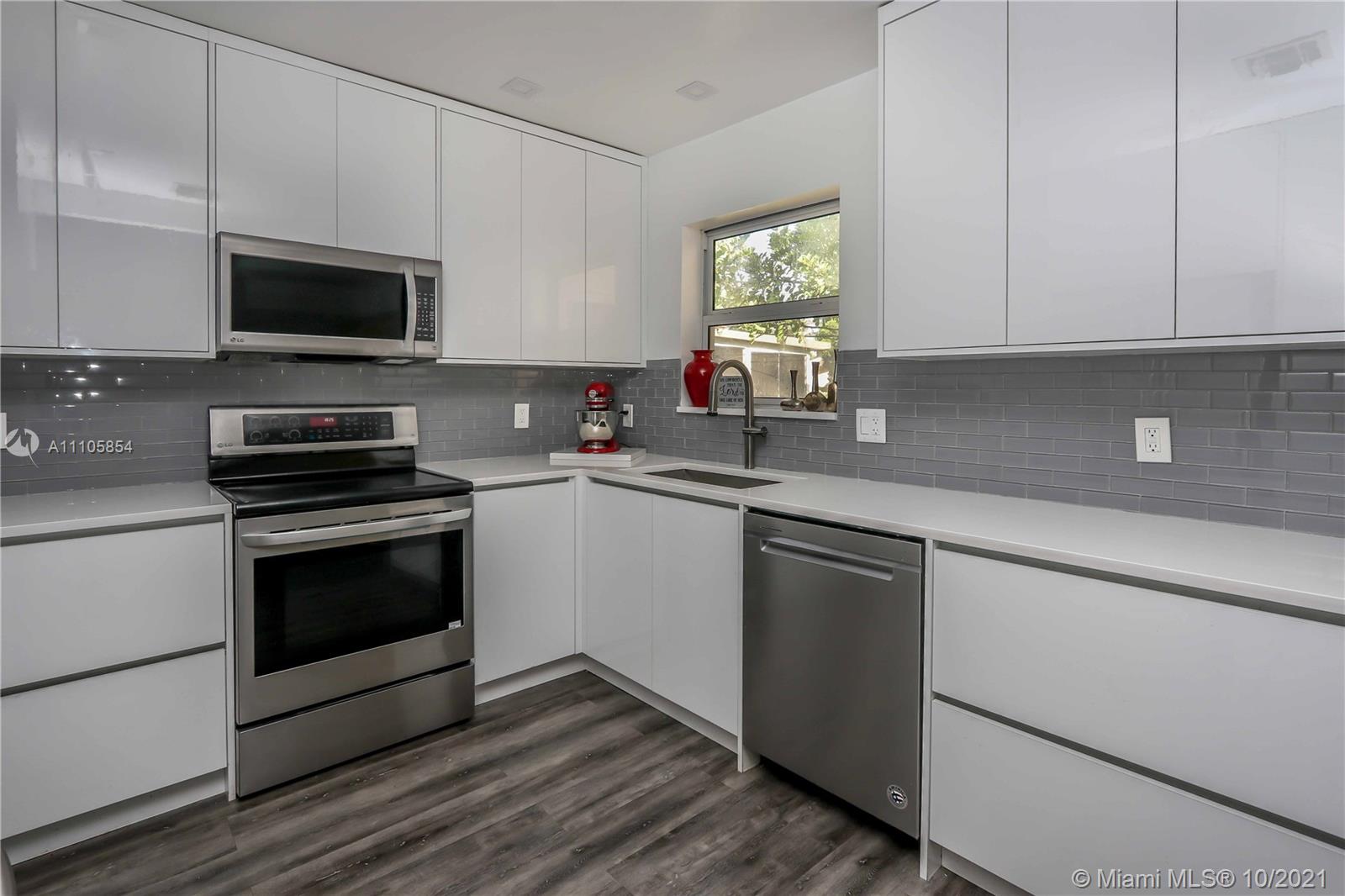 Gorgeous inside must see!!! Tastefully remodeled. High quality, imported white kitchen cabinets (soft close) from Spain with stainless steel appliances. Skylights in Dining/Florida room, leads to a covered patio, then to a new wood deck in the backyard. Main bedroom has bathroom and walk-in closet. Upgraded guest bathroom in hallway. Laundry room inside garage. HUGE 10,000+ Sq. Ft. fenced in backyard with an 8 X 10 Studio/Workshop with electricity. New hurricane impact windows and doors. Great neighborhood! East of I95. Convenient central location, 10 minutes to Ft. Lauderdale Airport, 5 minutes to Hollywood Beach. Close to Aventura Mall, Dania Pointe, City Hall Circle, Downtown Hollywood, & Hardrock Guitar Hotel...lots of entertainment. No HOA.**Contact listing agent for showing details**