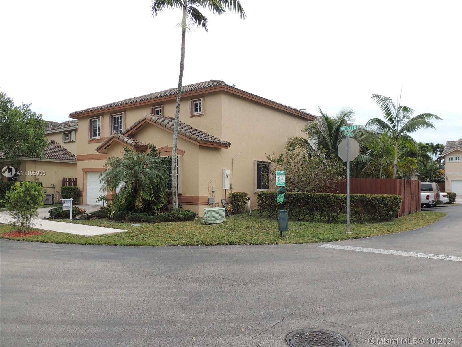 Impeccable Cul-de-Sac corner Single Family with 3-bedroom, 2.5 bathroom plus additional 267 sf of open den on second floor; this can be easily converted to a 4th bedroom. Total living area 2011 sf. Kitchen was remodeled in 2015, granite countertop, delightful backsplash & cherish cabinets. Laminated wood throughout first and second floor. Double sink, bathtub, and separate shower on Master bathroom. Accordion hurricane shutters for all doors and windows. Two-Car Garage remodeled w/extra storage. Extra space built under stairs in 2017. Backyard fence was replaced in 2017. Ample corner lot. Internet and cable included in HOA. Minutes to Turnpike, 826 & 836 expressways. Several A+ schools in the area.