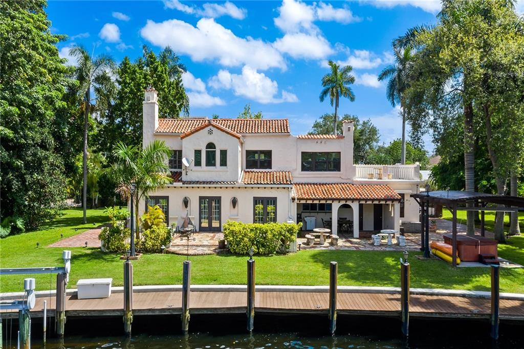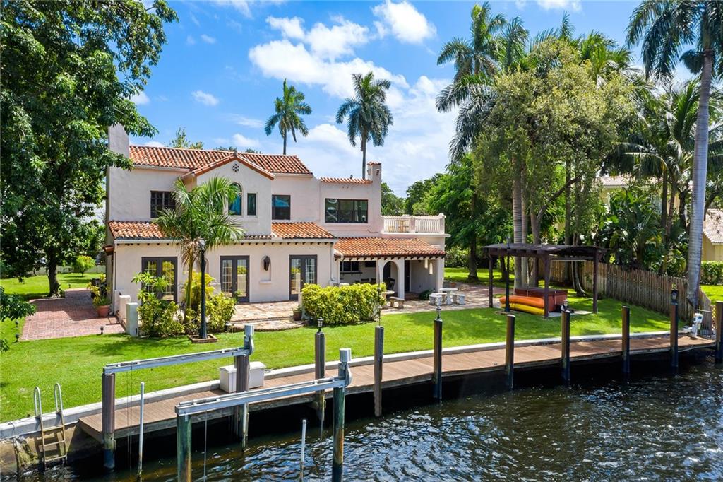 THIS is the WATERVIEW property you’ve been waiting for!! Presiding on the premier lot within the gated, boutique community of Tropical Point, is this classic 1920’s Francis Abreu designed perfectly situated on over a ½acre lot to capture spectacular sunsets along the New River. Retaining much of its original charm(fireplaces,wooden floors,French&curved doors), the 3,420SF residence places 4beds,2baths,a 2nd laundry room&spacious balcony off the primary bedroom on the second level.The views from the primary suite are simply gorgeous.The formal entryway,living,family,dining,kitchen,butler’s pantry,powder room&mudroom/laundry are all on the main level.The exterior covered patio is the perfect place to relax&enjoy all the glistening river&the abundant foliage that abounds along the property.
