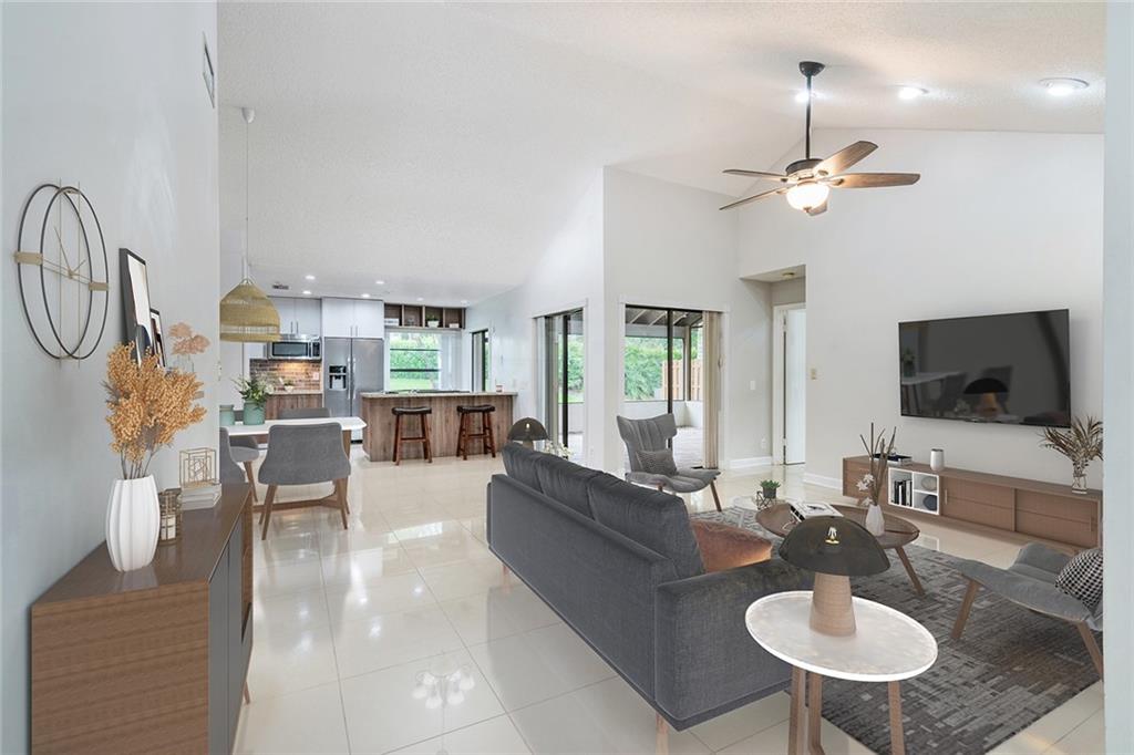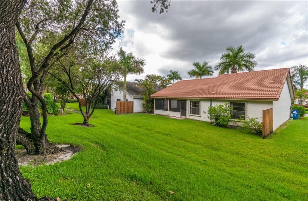 Charming and private, naturally lit open floor plan, vaulted ceilings with an updated kitchen, granite counters, SS appliances. 3 spacious bedrooms with an abundance of closets throughout the home (3rd bedroom is a permitted garage conversion) Perfect for a home office, gym , playroom or bedroom. 2 full bathrooms. Large covered and screened patio looking out to an oversized lush private backyard. Accordion shutters on all windows and doors. HVAC 2020, Roof 2008. This home sits on a cul-de-sac street in one of Weston's sought after neighborhoods. Walking distance to top rated schools, parks, restaurants, places of worship and plenty of entertainment. Just the perfect place to call home!