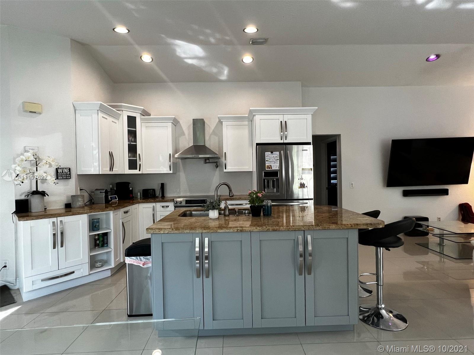 Upgraded 3 bedroom, 2 bath corner unit home in Savanna, Weston. Open kitchen with a large sitting island, stainless steel appliances, wood cabinets, and granite countertops. Large porcelain tiles in the living room and bathroom, wood laminate in bedrooms. Master and guest bath are upgraded, French doors open to a private patio. Weston A+ schools, Manatee Bay, Falcon Cove, and Cypress Bay.