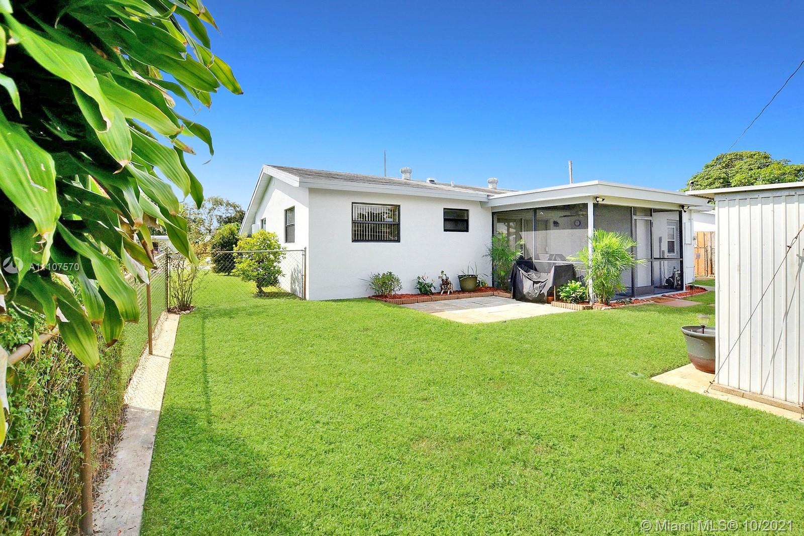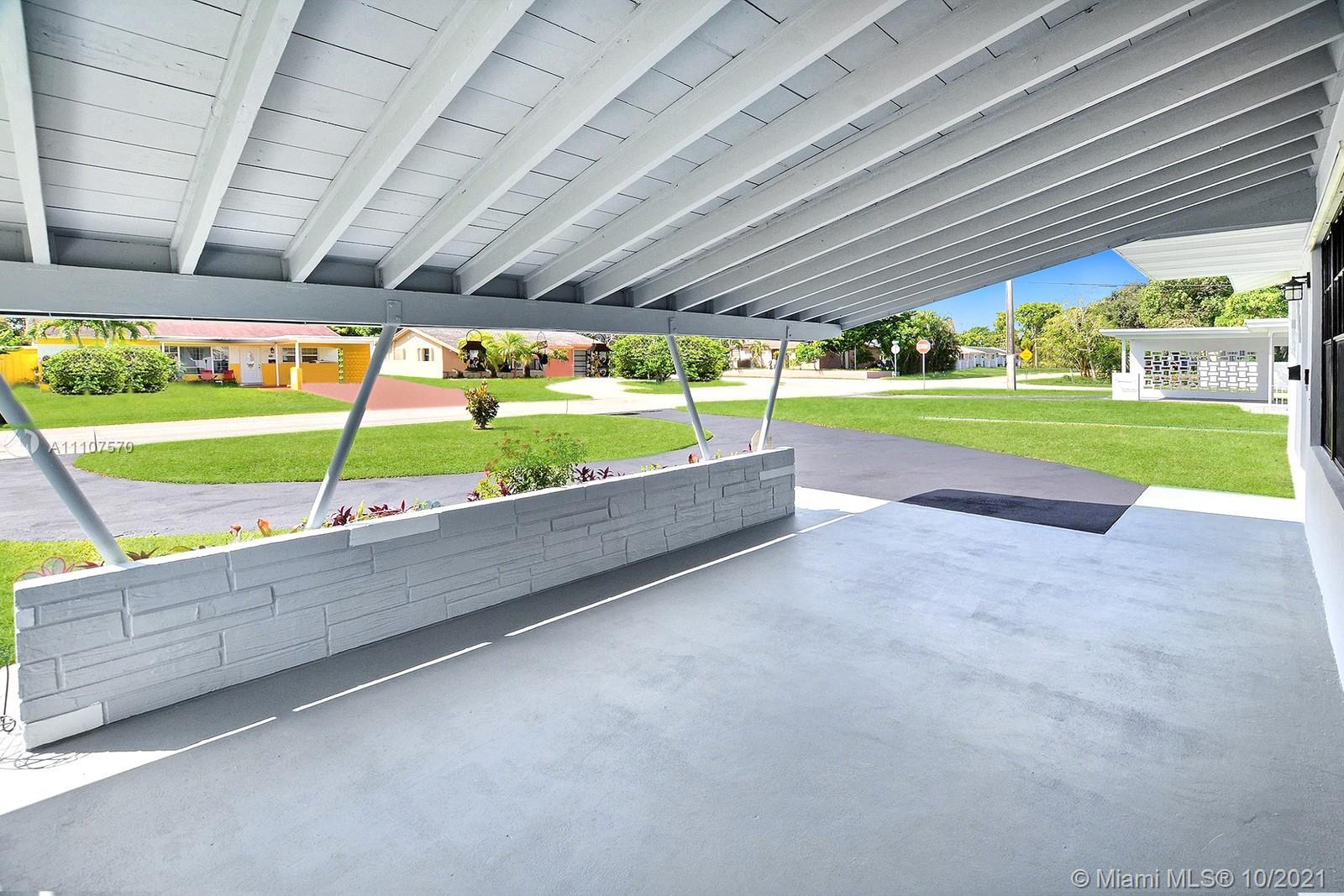 LOVELY 3 BED 2 BATH SINGLE FAMILY HOME HAS WELCOMING CURB APPEAL AND FRESH NEW PAINT. AN AWESOME OVERSIZED CIRCULAR DRIVEWAY EASILY ACCOMMODATES MANY CARS PLUS CARPORT. ENJOY LIGHT AND BRIGHT LIVING SPACES INSIDE, NEUTRAL TILE THROUGHOUT, AND A SPLIT FLOOR PLAN FOR PRIVACY. THE KITCHEN OFFERS REAL WOOD CABINETS AND STAINLESS STEEL APPLIANCES. A COMFORTABLE PRIMARY SUITE HAS LOVELY PLANK STYLE FLOORING AND EASILY ACCOMMODATES A KING SIZE BED. ENSUITE BATH IS UPDATED WITH NEUTRAL FIXTURES. SCREENED-IN PATIO IS PERFECT FOR OUTDOOR DINING. SPACIOUS FENCED YARD HAS ROOM FOR A POOL. EXTRAS INCLUDE A DEDICATED LAUNDRY ROOM AND A SHED FOR EXTRA STORAGE. CONVENIENT CENTRAL HOLLYWOOD LOCATION IS CLOSE TO RESTAURANTS, SHOPS, THE HARD ROCK CASINO, AND IS JUST A SHORT DRIVE TO THE BEACH. NO HOA