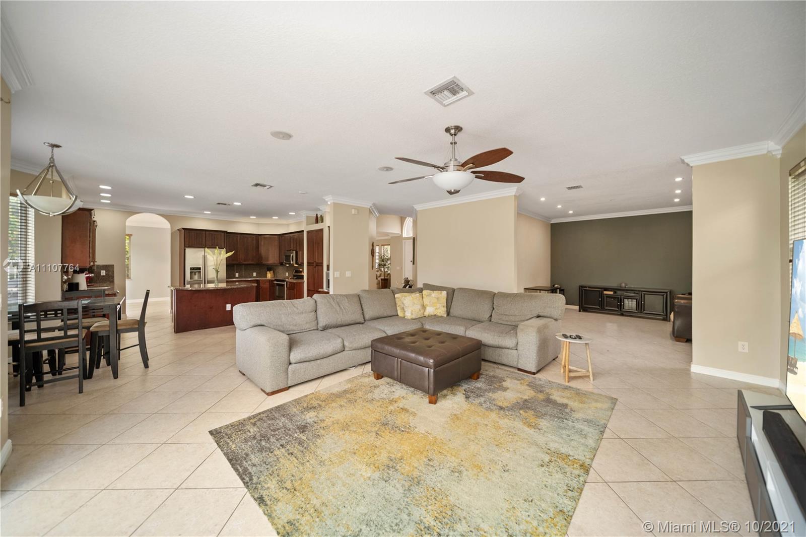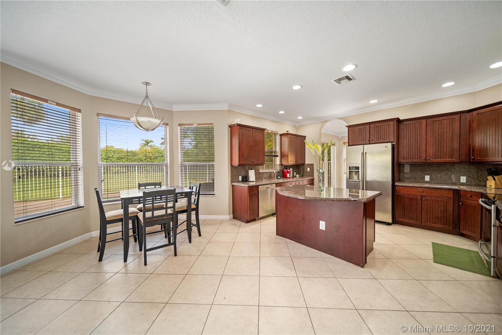 Gorgeous 2 story home with just under 4,000 square feet of living space with 3 car attached garage. This home boasts 4 large bedrooms (master suite), 4 bathrooms, formal dining room, living room, family room and open kitchen (island) with breakfast area. Kitchen features beautiful corian countertops throughout, dark cherry cabinets, off-white tile floors, and crown molding. Downstairs features beautiful tile floors throughout, wraparound staircase, open concept and drenched in natural sunlight. Backyard features custom brick layout, large pool, BBQ area and room for entertaining.