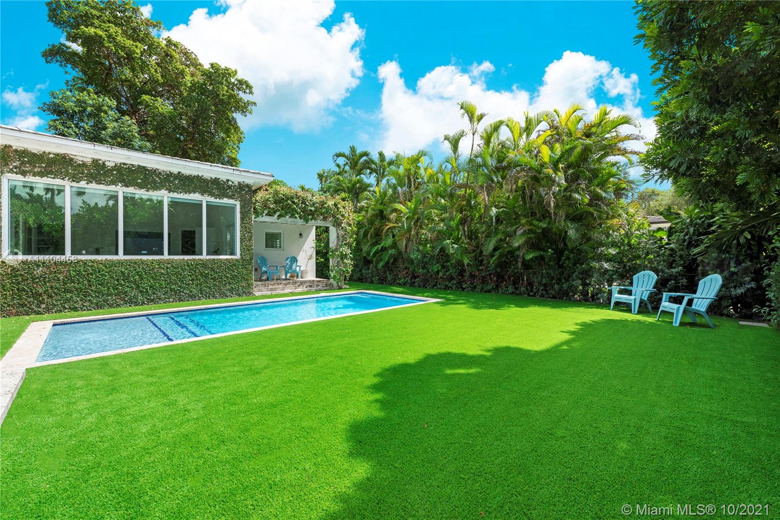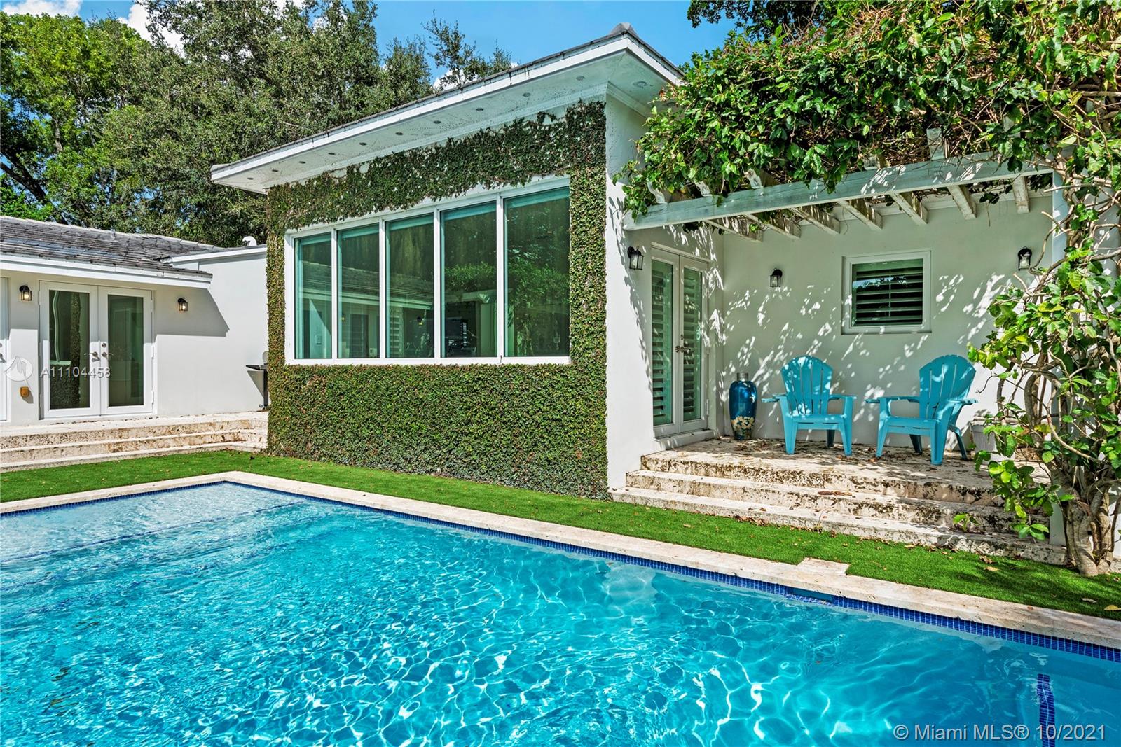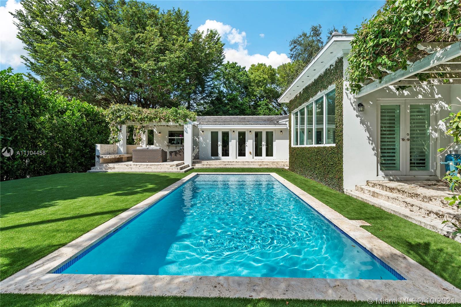 South Gables location at its best. Sitting on a 9,375 sqft lot, this 4 bedroom and 3 full bathroom home was fully renovated in 2017. A Master suite was added with 12 ft ceilings, 2 walk-in closets, a gorgeous marble bathroom with 2 vanities. A brand new salt water heated pool was completed in 2021 surrounded with artificial turf throughout provides for a clean look. A charming pergola with coral rock flooring completes a beautiful and relaxing outdoor setting. Other features include: impact windows/doors, classic style kitchen with stainless steel appliances, all natural color pine hard wood floors, new electrical, PVC plumbing and a 1 car garage. Across the street from the neighborhood family park. Jaycee Park amenities include: basketball, tennis, walking/exercise path, and much more