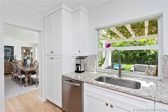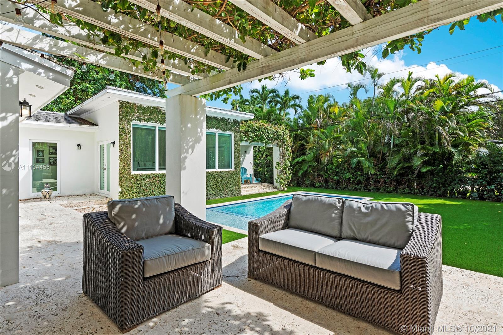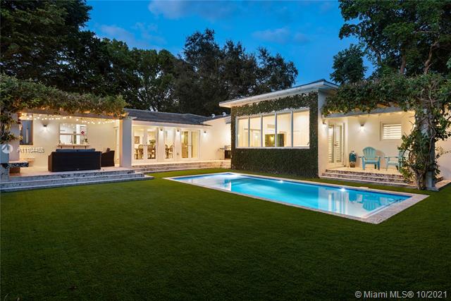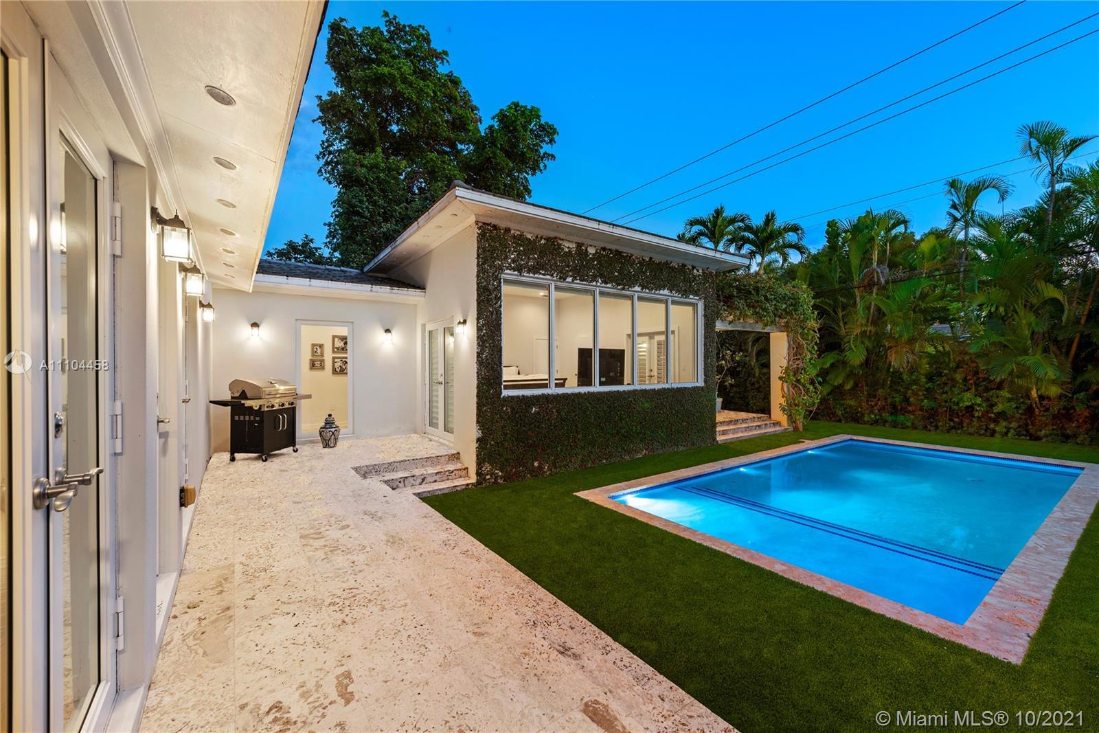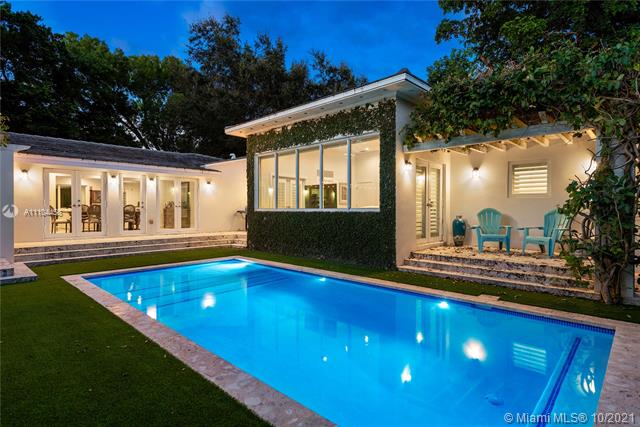 South Gables location at its best. Sitting on a 9,375 sqft lot, this 4 bedroom and 3 full bathroom home was fully renovated in 2017. A Master suite was added with 12 ft ceilings, 2 walk-in closets, a gorgeous marble bathroom with 2 vanities. A brand new salt water heated pool was completed in 2021 surrounded with artificial turf throughout provides for a clean look. A charming pergola with coral rock flooring completes a beautiful and relaxing outdoor setting. Other features include: impact windows/doors, classic style kitchen with stainless steel appliances, all natural color pine hard wood floors, new electrical, PVC plumbing and a 1 car garage. Across the street from the neighborhood family park. Jaycee Park amenities include: basketball, tennis, walking/exercise path, and much more