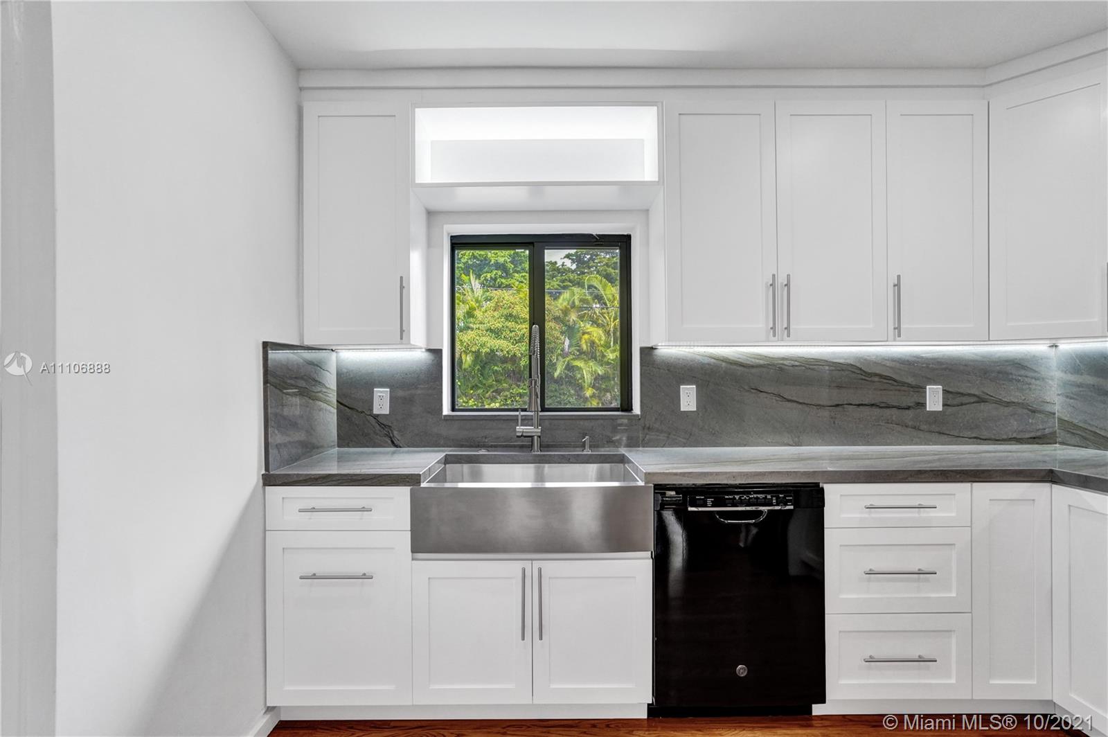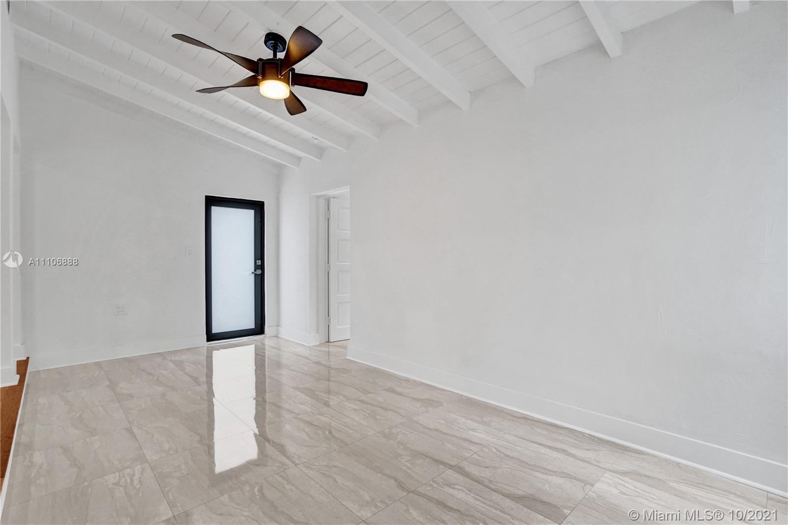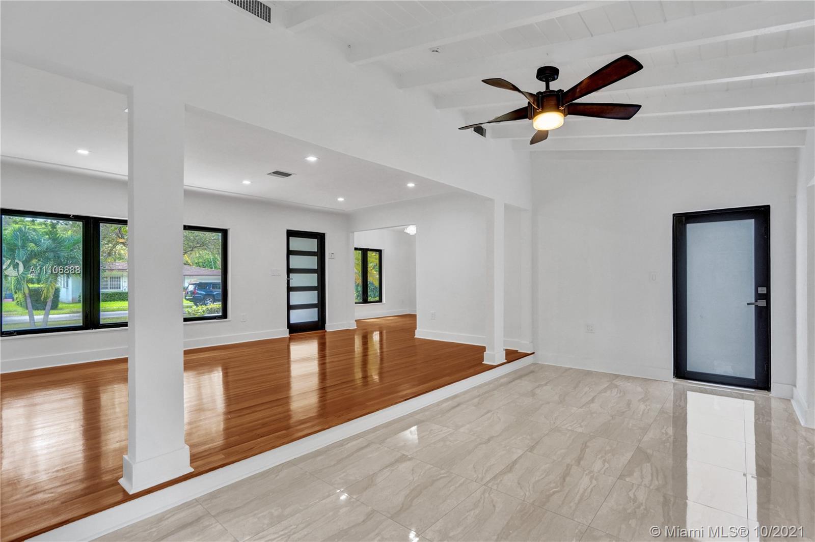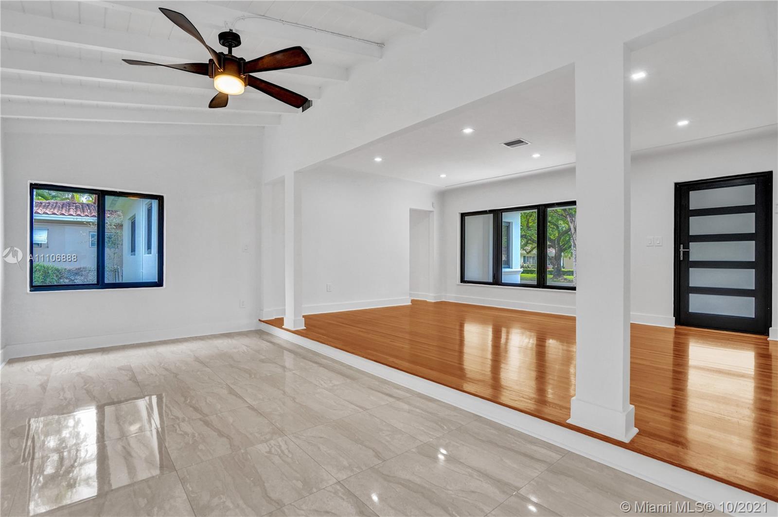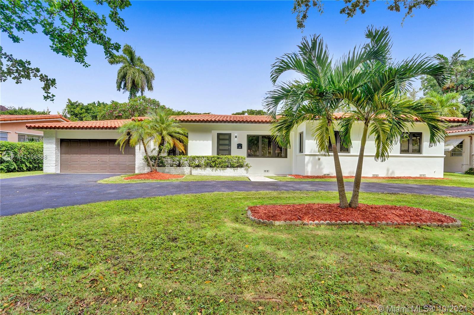 Totally updated Coral Gables home, on an 11,000 sqft lot. The home is a 4 bedroom 3.5 bath with a 2-car garage and large backyard. Impact windows and doors, high-end appliances, and LED lighting throughout the home. The kitchen has new cabinets and Quartsize countertops. There are two master bedrooms, one with a walk-in and the other with plenty of storage. This home exhibits a wonderful grand living area, with a high wood ceiling.