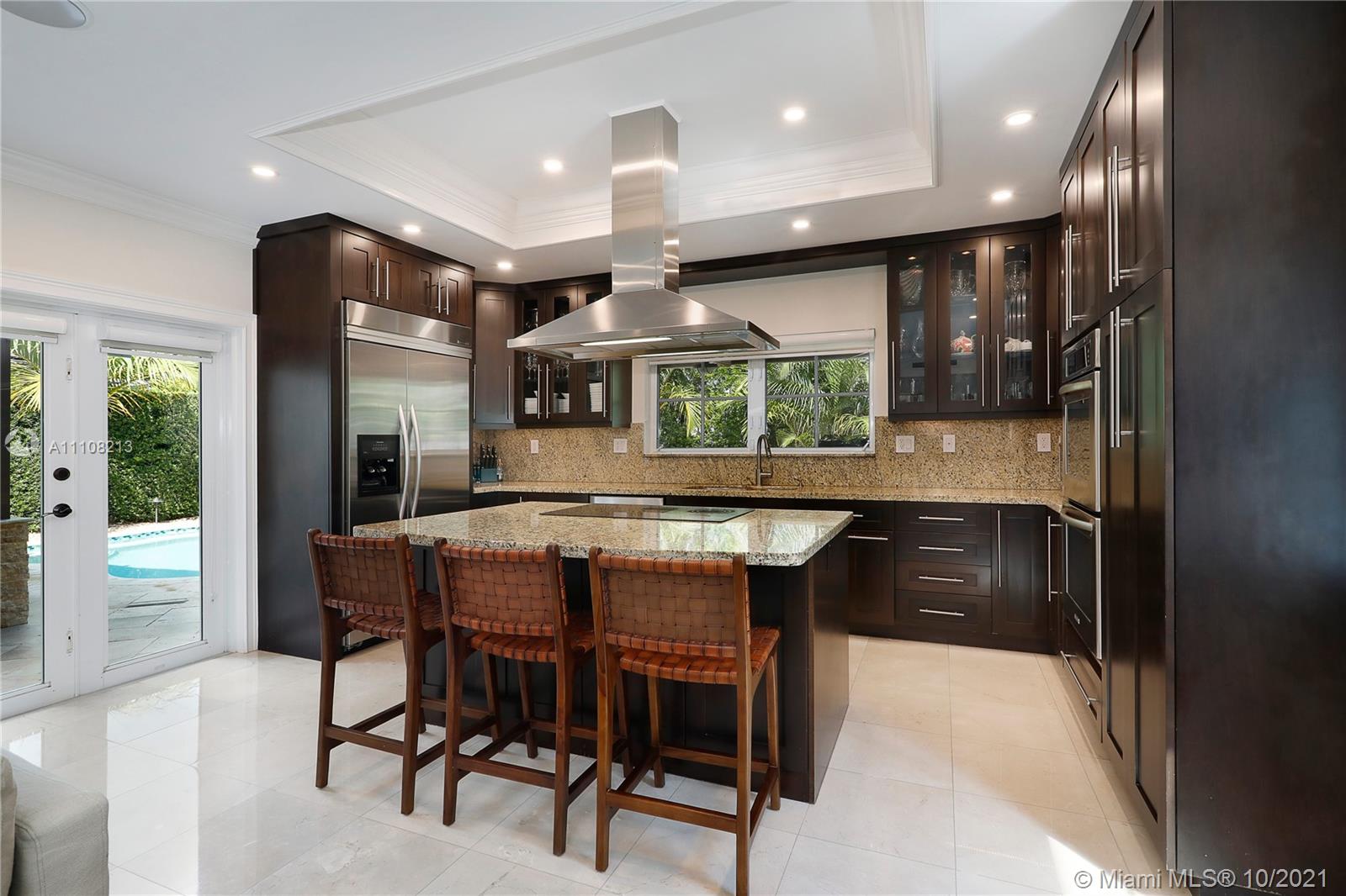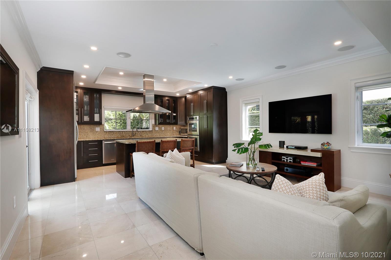 Elegant, Spanish-style home perfect for entertaining & comfortable living. Extensively renovated in 2009 and every detail was meticulously selected. Highlights include high ceilings & light-filled living spaces, formal living & dining rooms, gourmet kitchen w/ island connected to the beautiful family room with glass doors opening to the pool area, 2 BD with a Jack & Jill BR downstairs, 2-en suite BD upstairs. The pool patio is surrounded by privacy hedges offers lovely summer kitchen & covered pergola with fireplace. Additional features marble floors throughout staircase & downstairs, wood floors upstairs, W/D upstairs, new plumbing, electric & septic tank, hurricane impact doors & windows. Ideally located near parks, UM, The Biltmore Hotel and the Riviera Golf Course. A true gem!