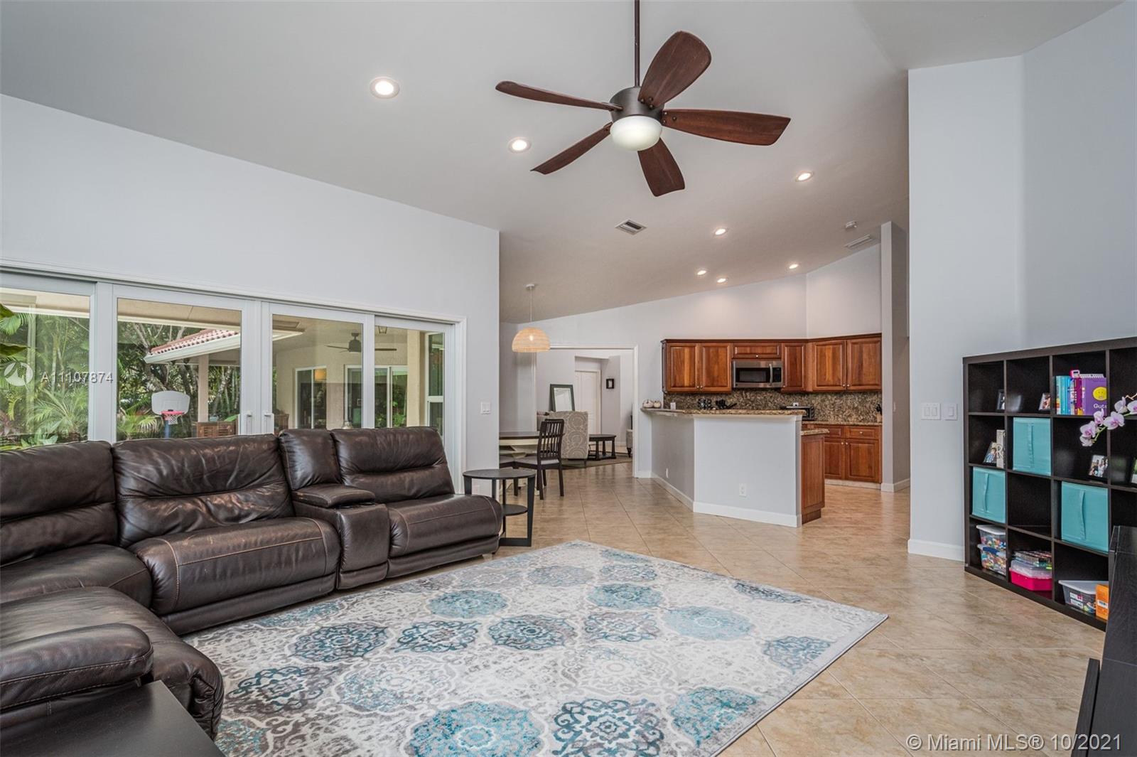 Situated at the end of the cul de sac in Tequesta Lakes, this spacious 4 bed/3 bath home has it all. Triple split floor plan with vaulted ceilings and plenty of space to entertain. Open kitchen with granite countertops and stainless steel appliances. Tile & wood flooring throughout. LED lighting. Impact windows installed in 2019. 2018 AC. 2007 roof. Enjoy the privacy in this completely renovated backyard with tropical landscaping, new pool and travertine deck. 2-car garage.