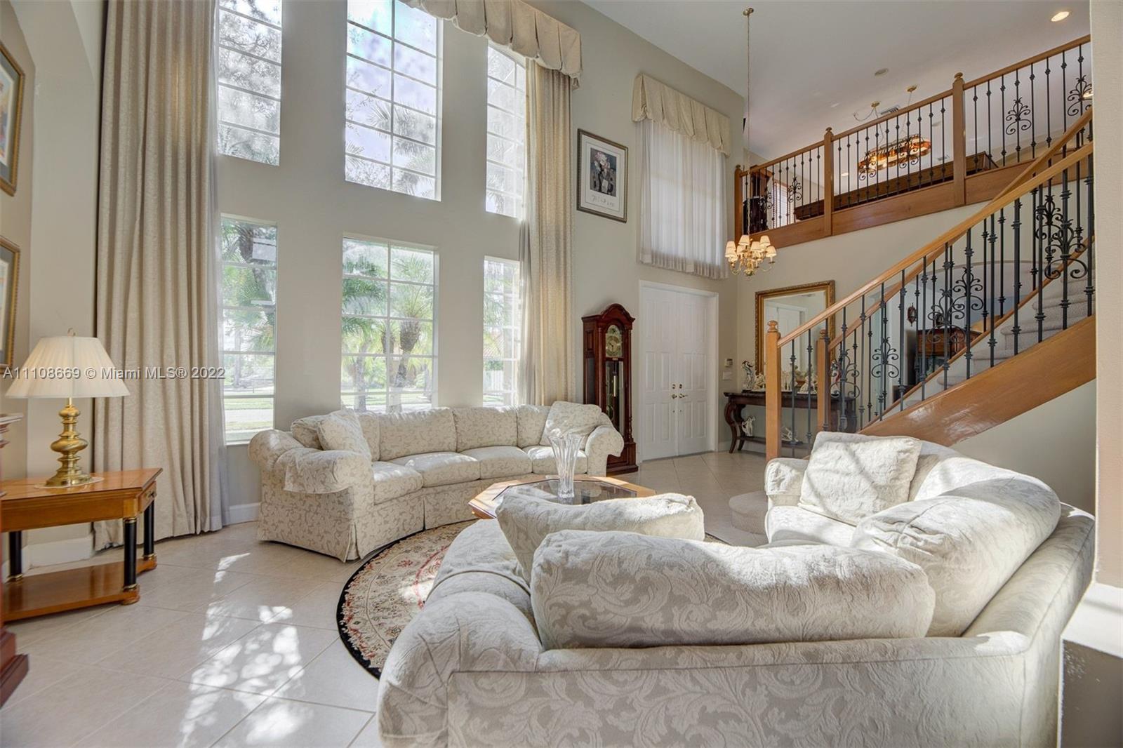 Welcome to your new home! This amazing 4 bed/3 bath corner lot pool home in Windsor Palms in west Miramar boasts 20 ft ceilings, an oversized master suite with dual showers & his/her walk-in closets, 3 car garage, heated salt water pool/spa & large patio for entertaining. Open upstairs loft area with bar. 1 bed/bath en-suite downstairs. Gated with 24- hour security, HOA only $155/month. All new/recent: both A/C units (2020), tankless water heater, irrigation/sprinkler pump, pool pump, exterior paint. The home was built in 1999 & has been well maintained. 4,050 SQFT (per Appraisal) provides 2,288 downstairs and 1,762 upstairs living space & sits on just under 1/4 acre. Bring your clients... and send your offer.