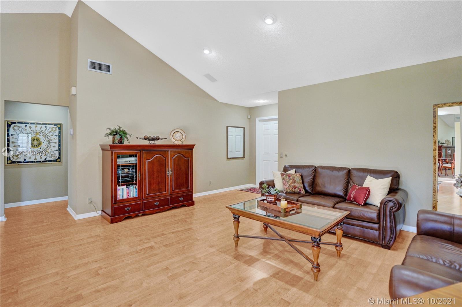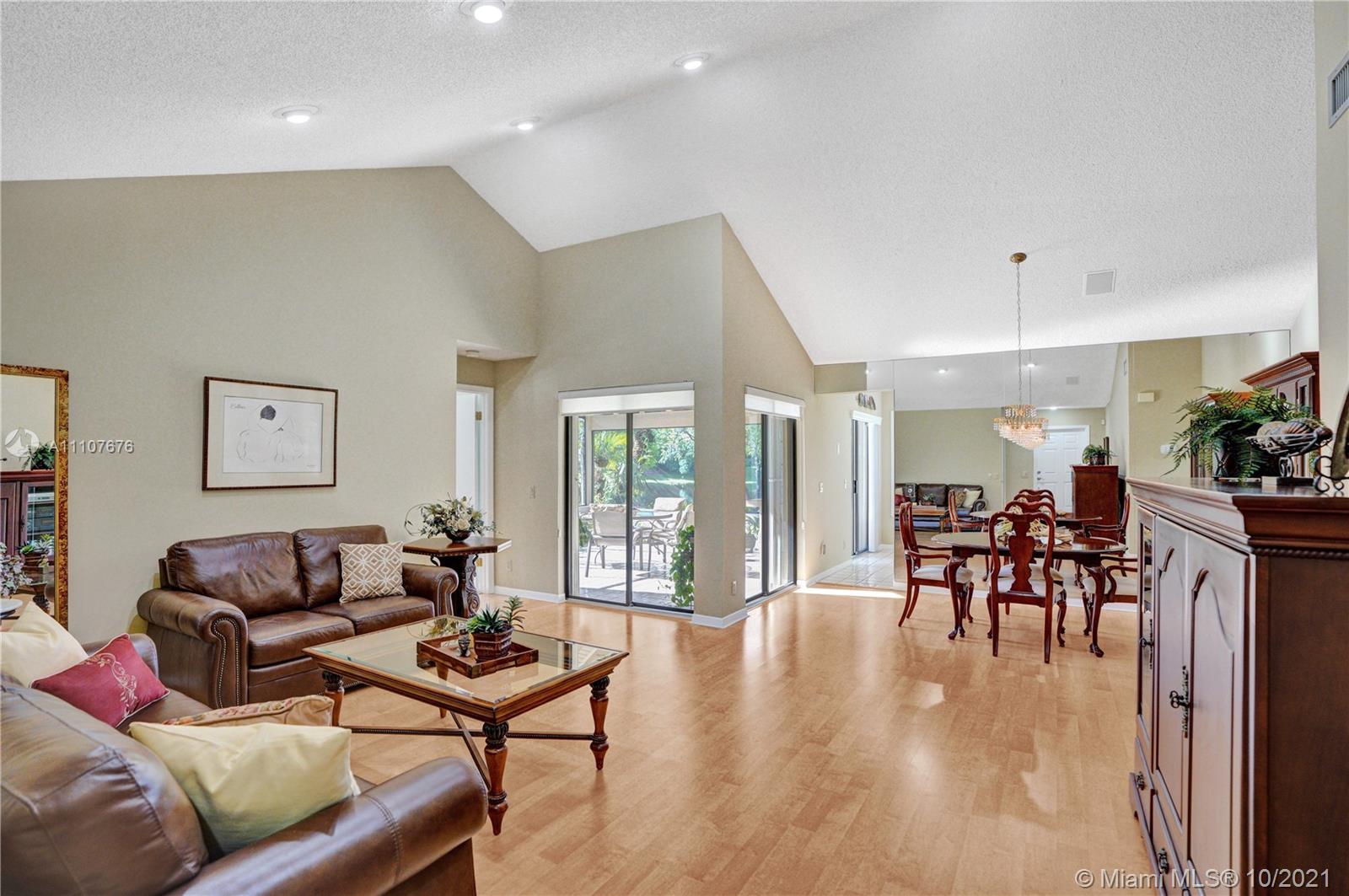 Stunning lakefront home where you can relax and kick back in this highly sought-after neighborhood of Country Isles. A spacious screened and tiled patio is a perfect retreat to sip your morning coffee or enjoy an evening dinner. Wood-grain flooring and vaulted ceilings in this home showcase a beautiful great room and a Modern Kitchen making it perfect for entertaining and family gatherings. Immaculately maintained home has newer appliances including, Stainless Steel Appliances, air-conditioner. The low maintenance fee covers lawn maintenance, community pool, and reserves. Within easy walking distance to three passive parks and highly rated Weston schools with quick access to major highways. A Perfect Lakefront Home that won't last!! Note:(actual date to appear on MLS was 10/7/2021)