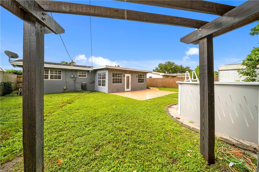 Beautifully updated home with pool in a quiet and family-oriented neighborhood. Renovated bathroom, porcelain floors, and new kitchen with stainless steel, high-end, Samsung appliances. Tankless water heater for great energy savings and a large and completely fenced-in backyard with a amazing above ground pool and legal outdoor shed. New pump and fully-functioning sprinkler system. Florida room was partly used as a third bedroom.