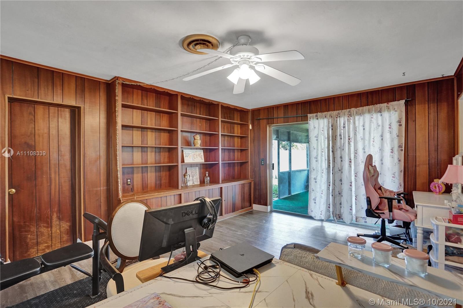 Heart of Hollywood Hills 4 bedroom 3 bathrooms home. Open living space with living room, dinning room, and family room. 3 large bedrooms to one side, master has a walk in closet and bathroom. Guest bathroom has been redone. Kitchen has a bar area into the dining room and an entrance to the garage. 4th bedroom is a huge in law suite with separate entrance to the back patio and side entrance with private fenced yard, really nice. Impact windows and ceiling fans throughout. The location is perfect close to the beach, downtown, and top rated hospital. This home has had a lot of love through the years and it's time for a new family to make it their own. Come and see it you will not be disappointed!