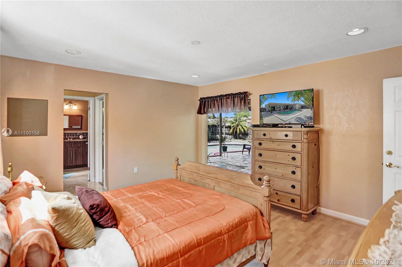 Beautifully maintained 3/2 on a corner lot. As you enter you will immediately notice the gorgeous travertine flooring and the spacious layout. This home features big windows and sliding glass doors in the living room and dining area that let in copious amounts of natural light. The master bedroom has access to the pool and an en-suite that feels more like a spa. The kitchen windows have pass-through to the pool area; perfect for entertaining. Completely move-in ready and conveniently located near major highways.