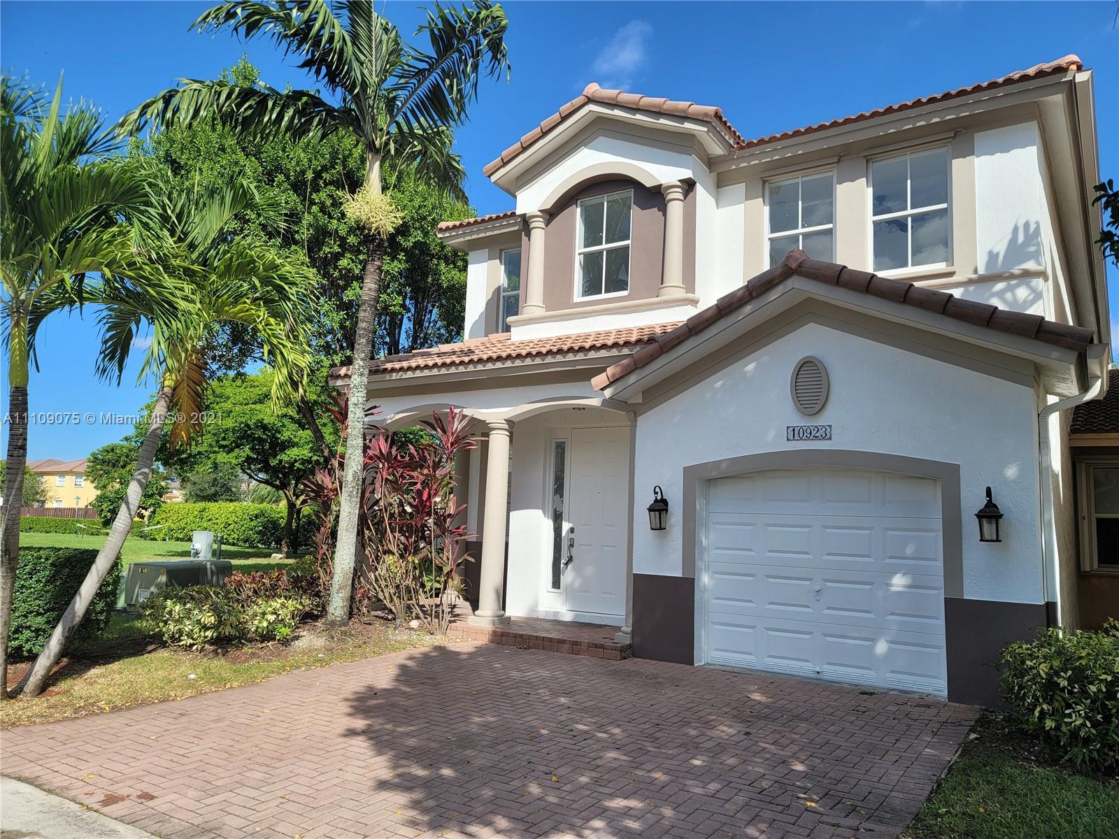 Corner Coach Home in Mediterranean. High Ceiling. 4 bedrooms and 3 bathrooms. New Kitchen, white cabinets. New AC from 2020. Access to The Island At Doral Club House with gym, sauna, tennis court and huge pool. House will be painted inside and outside. Centrally located, near to A+ schools, shopping area, restaurants, supermarkets, expressways and the Miami International Airport.