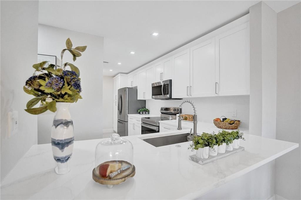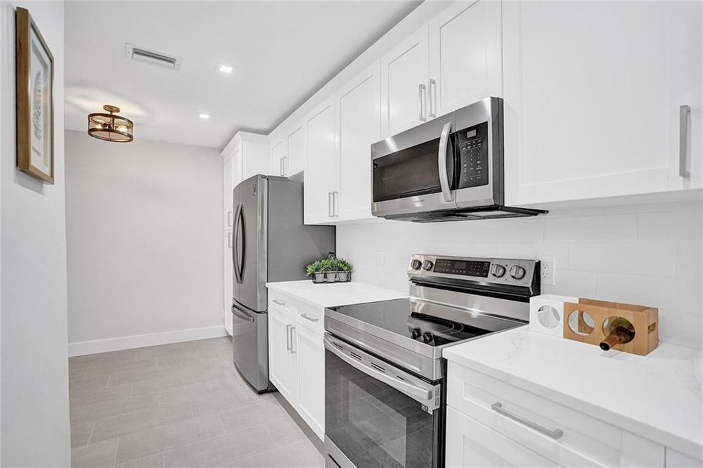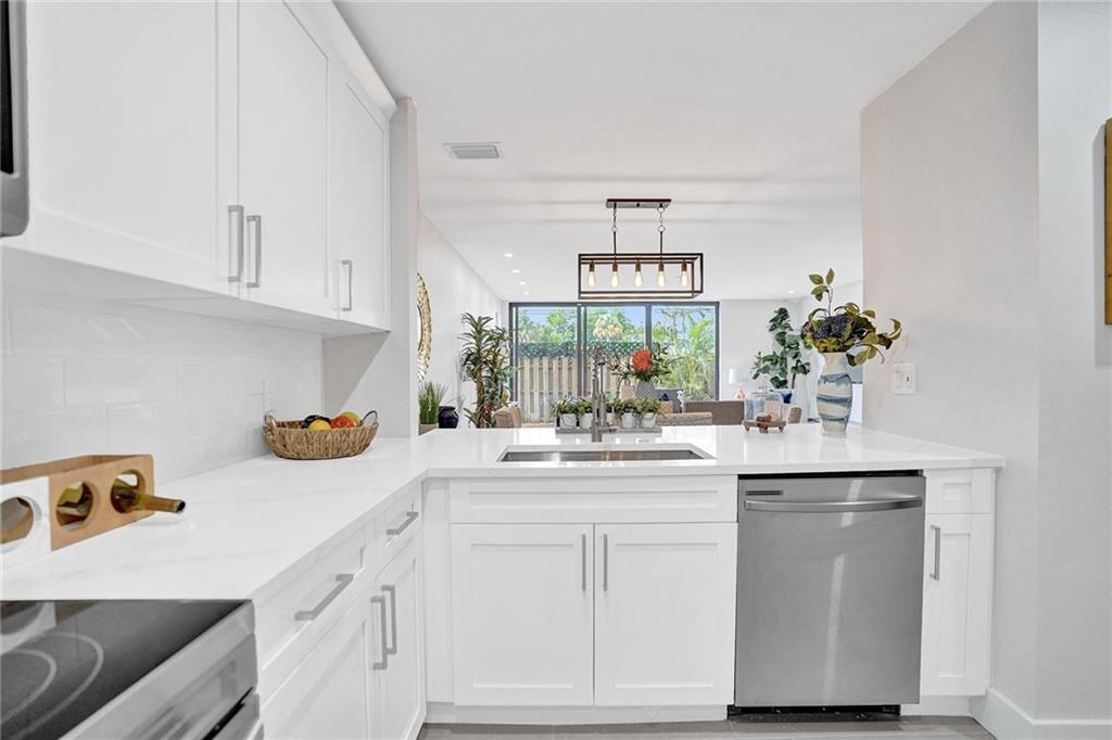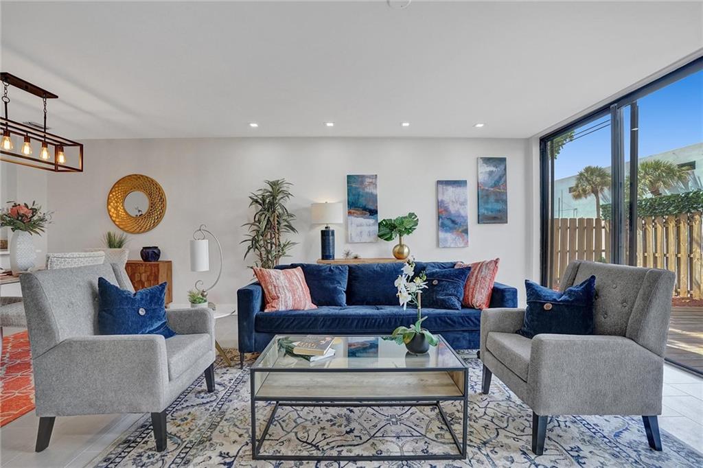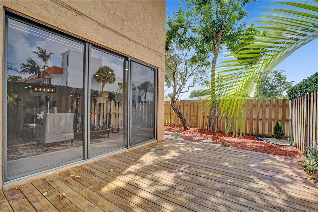 Spectacular and completely renovated 2 bed, 2.5 bath, corner-unit townhome located in East Ft. Lauderdale! Large and spacious open floor plan with an extensive wrap-around back yard, perfect for entertaining. This turn key townhouse consists of a brand new, freshly remodeled kitchen, bedrooms and bathrooms, a plethora of natural light and direct access to the pool area. Other new features include: All Samsung stainless steel appliances, Carrera quartz countertops with custom white maple wood cabinetry, new water heater, custom kitchen nook, walk-in closets, French doors and 2 deeded parking spaces. The location is perfect, as you can walk to local shops, restaurants, bars and much more. Walk/Bike to the beach and many other entertainment venues! *Showings at Open House this Saturday*