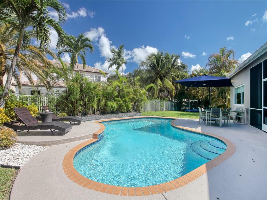 Desireable & sought after Weston beauty in "The Ridges"! This well maintained home is nestled on a corner lot leading to a quiet cul de sac. TONS OF UPGRADES including NEW Refrigerator, NEW D.W., NEWER AC, NEW HURRICANE RATED FRONT DOOR, many windows IMPACT GLASS! Awesome AQUA FIL WATER FILTERS makes Alkaline water, yes even in the shower!! Exterior has been freshly painted & nicely landscaped! Enjoy time off on your relaxing screened lanai, that leads out to a tropical pool, patio, & fenced backyard. Swimming pool safety gate (not shown). The Ridges is guard gated & offers fabulous amenities to create family memories including Clubhouse, Pool, Tennis, Playground, & Basketball. Close to A Rated Schools, Weston regional parks, shopping, dining, & the highways.