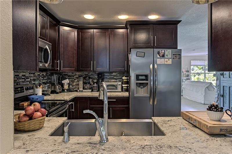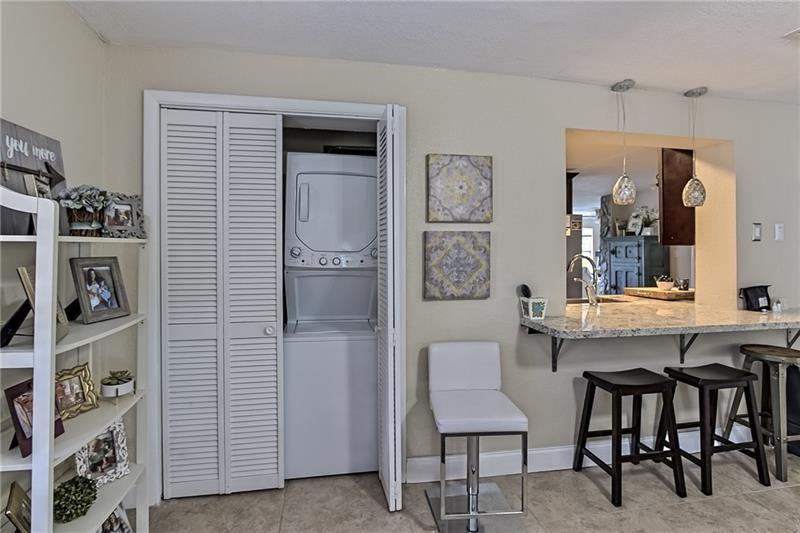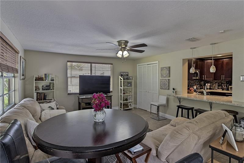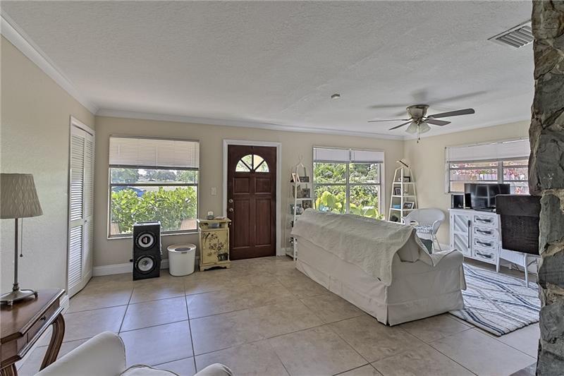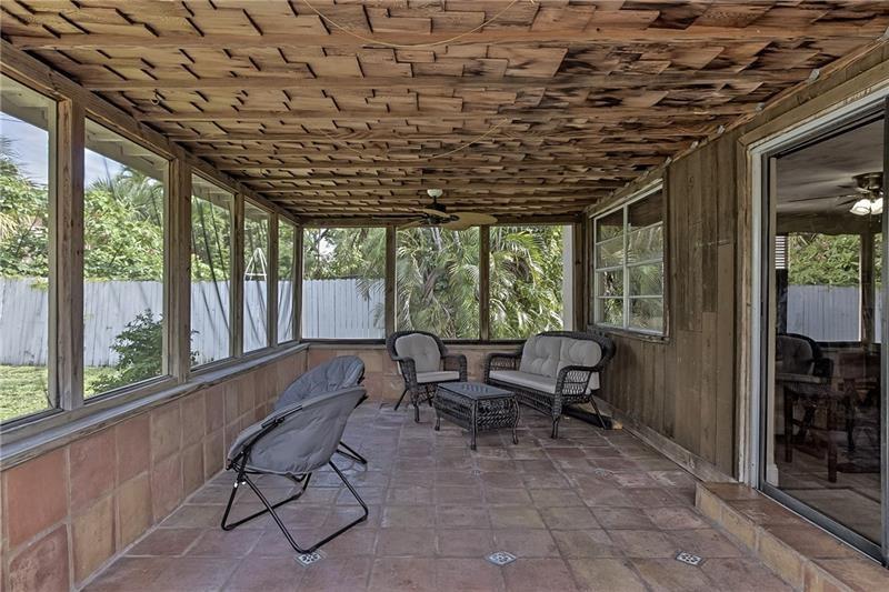 Spacious 2 BED/2 BATH walking distance to the beach. Just over 1700 sf with large yard and screened patio and features a cozy fireplace. Kitchen and baths updated in the past. Kitchen has granite countertops and stainless steel appliances, stacked washer/dryer inside. Tile floors thru-out with lots of windows and natural light. Large fenced yard with big shade tree, get for pets and kids to roam around. Desirable east of US1 neighborhood, close to beach, shopping and dining.