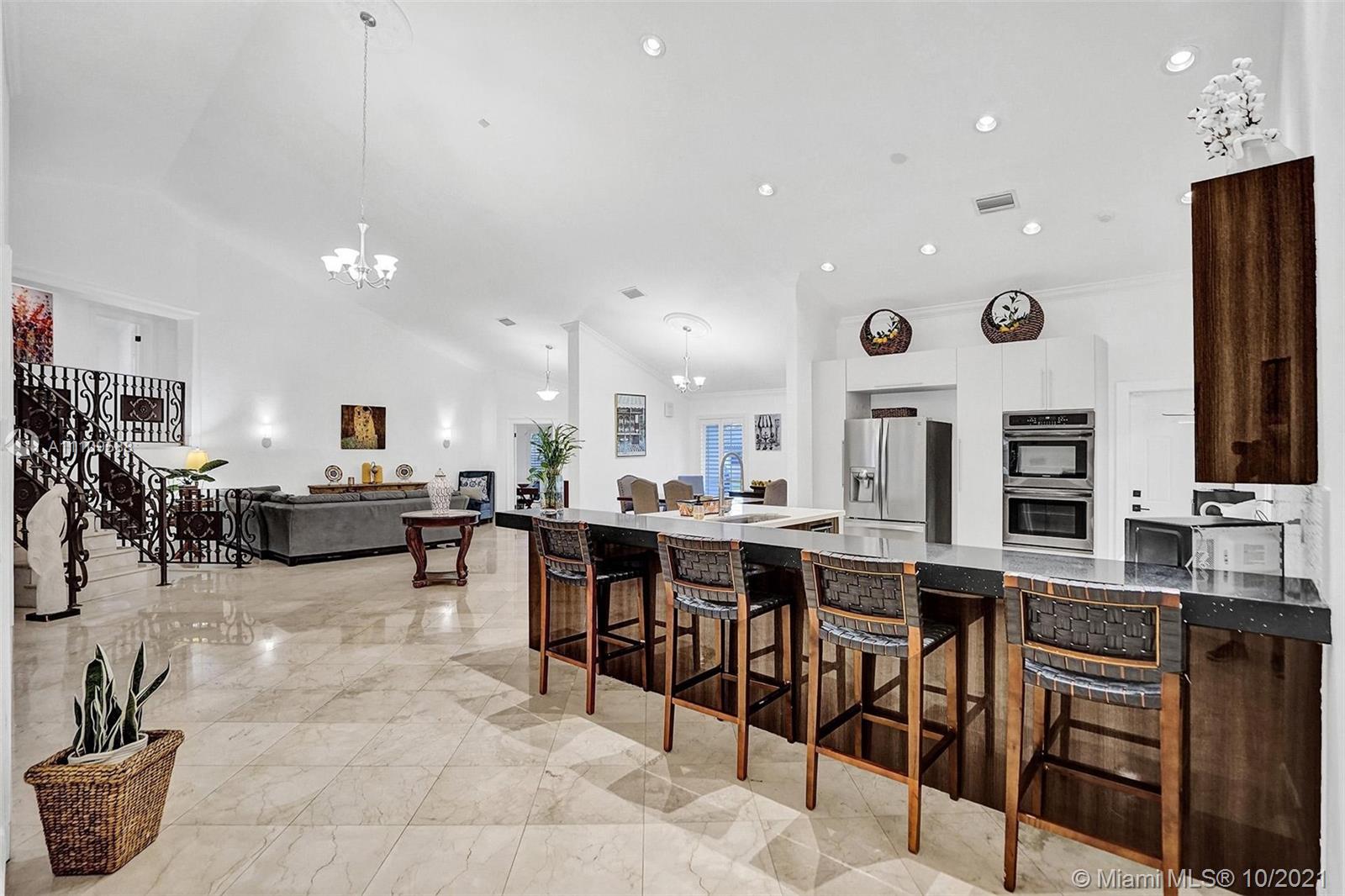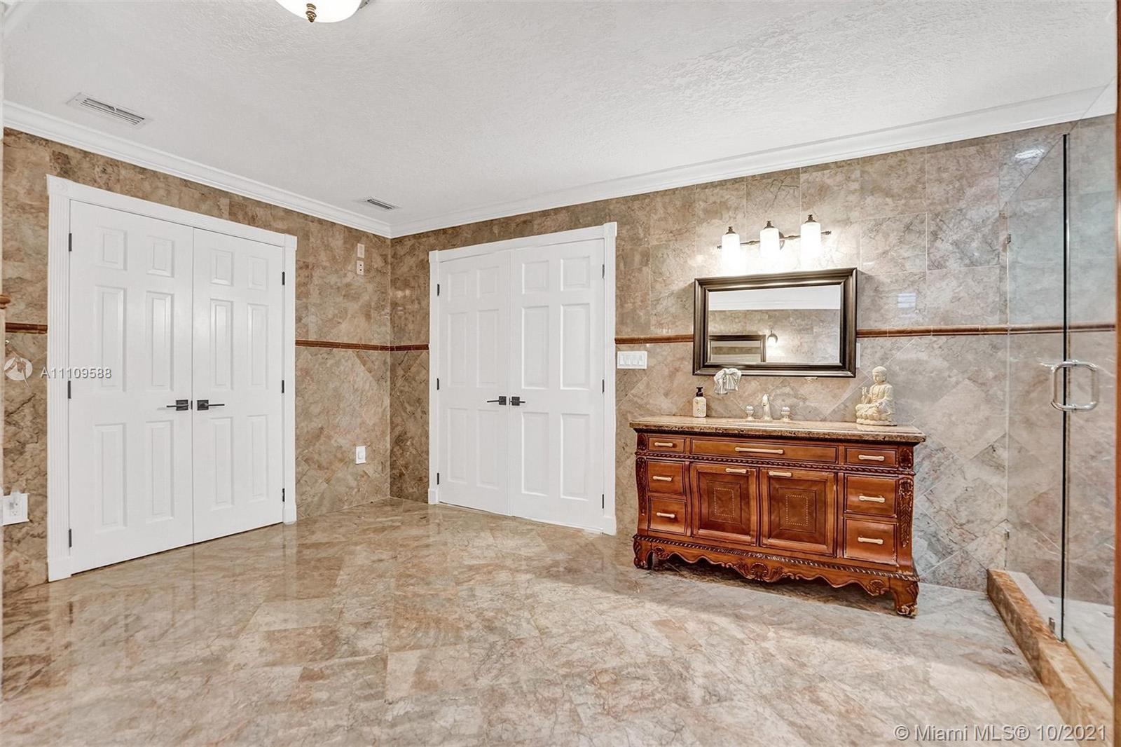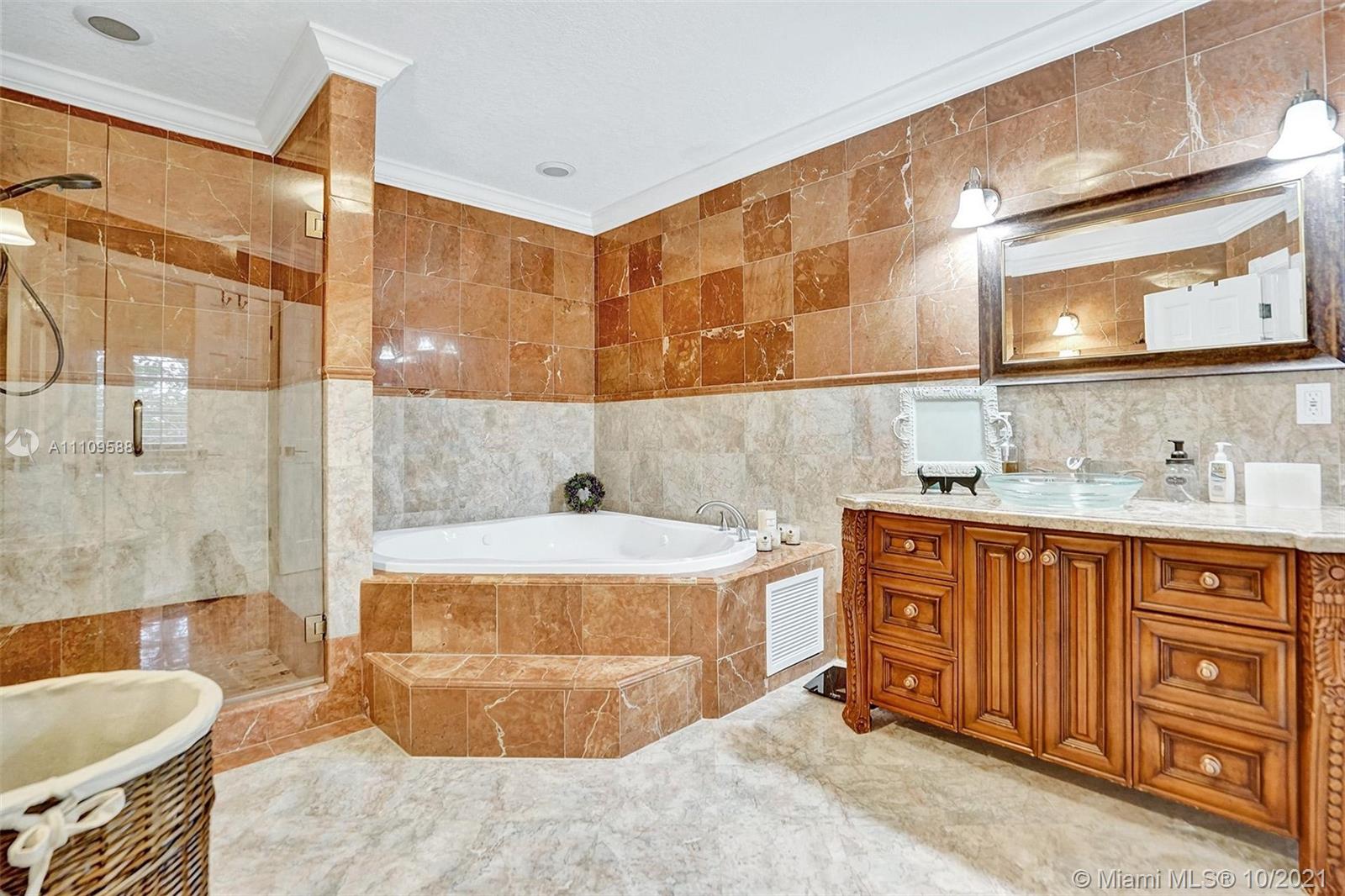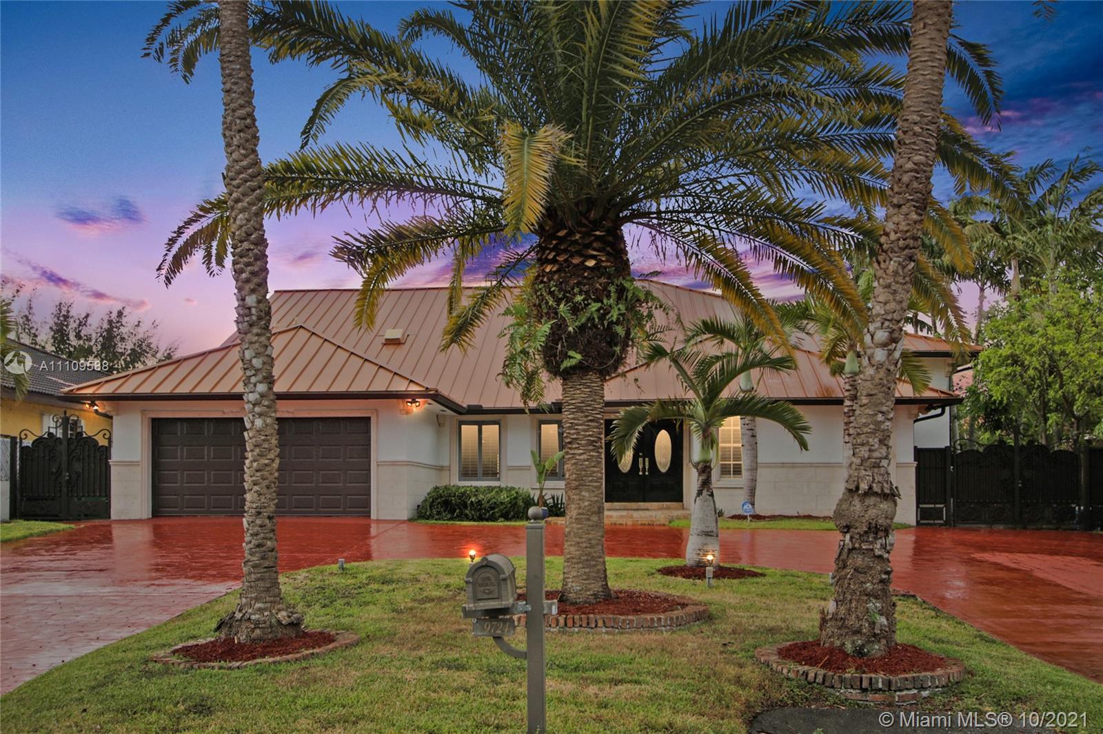 This elegant estate is located in one of Doral’s most desirable communities, the Vanderbilt subdivision a family oriented neighborhood with no homeowners association to deal with. This home welcomes you with great curb appeal, a grand circular driveway, and a glamorous entrance featuring the spacious living areas with high ceilings that will leave you breathless. Other home features include a copper roof, marble floors, plantation shutters, an updated kitchen, two master suites, grand master bathroom, plenty of closet space, a cabana bathroom, a laundry room, French doors, & two gazebos, also with copper roofs. With over 4,200 ft.² of living area and almost 10,000 ft.² of outdoor entertainment you, your family, and friends will have many memories to create.