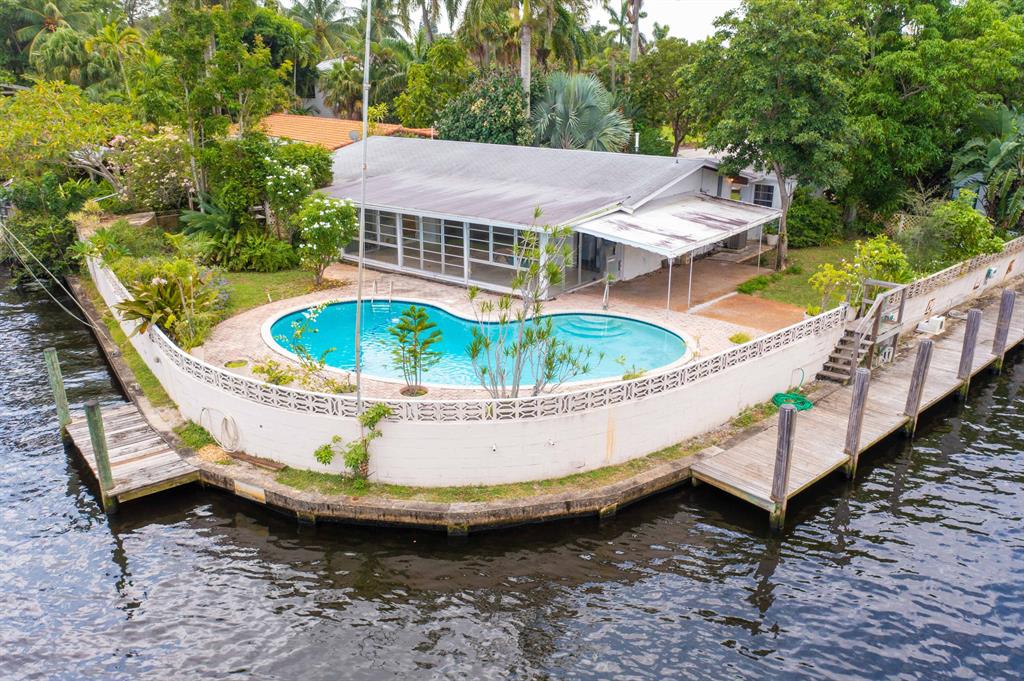 Priced at recent appraisal value for a quick sale! Incredible Wrap-around Point Lot featuring 203' of deep water on the New River in Ft Lauderdale with no fixed bridges. Bring your whole fleet of boats and soak in the South FL waterfront lifestyle. Build your dream home or renovate the existing 2 bedroom, 3 bath 1677 ft. home with deep swimming pool. Home is on city water and sewer, and has natural gas already available. Roof was replaced in 2014, AC in 2019, and gas water heater in 2020. There's simply no other opportunity to own a waterfront lot like this currently in Fort Lauderdale. Close to I95 for easy commute!