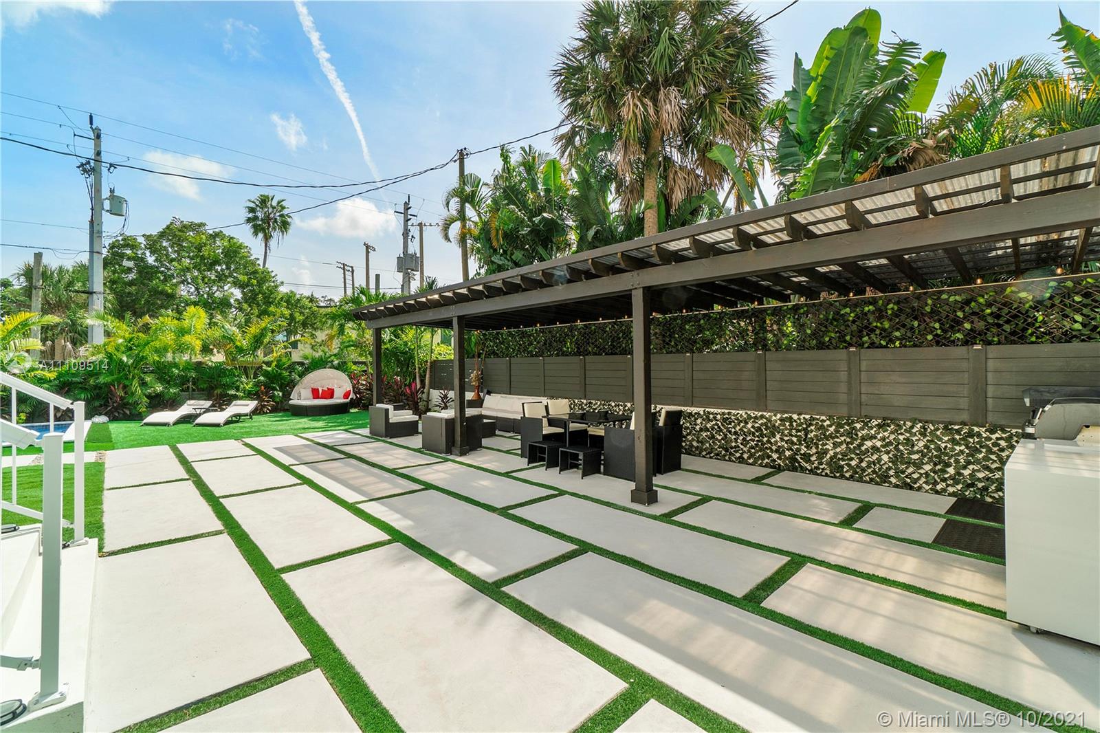 Gorgeous turnkey corner 4/4 pool built 2020 townhome in the heart of Fort Lauderdale. 1.5 car garage with indestructible vinyl floorings. Sold Fully furnished. All Hurricane windows and doors. Home features open layout concept with porcelain floors, custom draperies, tons of natural lighting, upgraded European style kitchen, and upgraded bathrooms. Large Master suite with walk in closet. Master bathroom has spa style soaking tub and rain shower. Separate upstairs walk in laundry room. Built above FEMA code standards and built 15 feet above sea level. No HOA and great for air bnb. Custom pergola that features pizza oven, rotisserie grill, wet bar, and wine/beverage cooler. Pool is 12X24 and five foot sundeck. All maintenance free turf; high quality landscaping. Fully fenced.