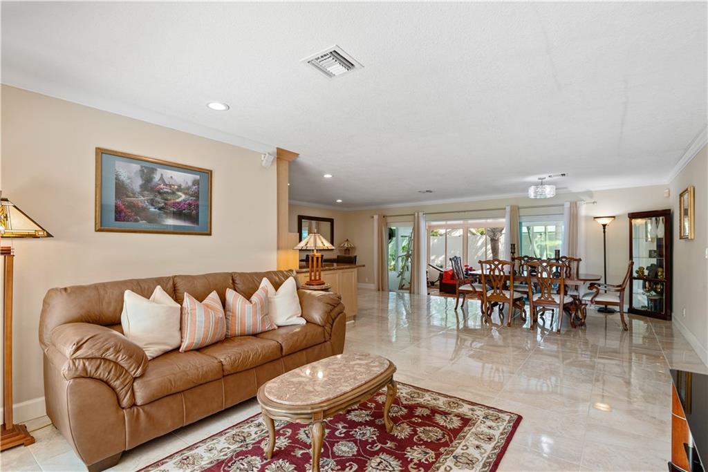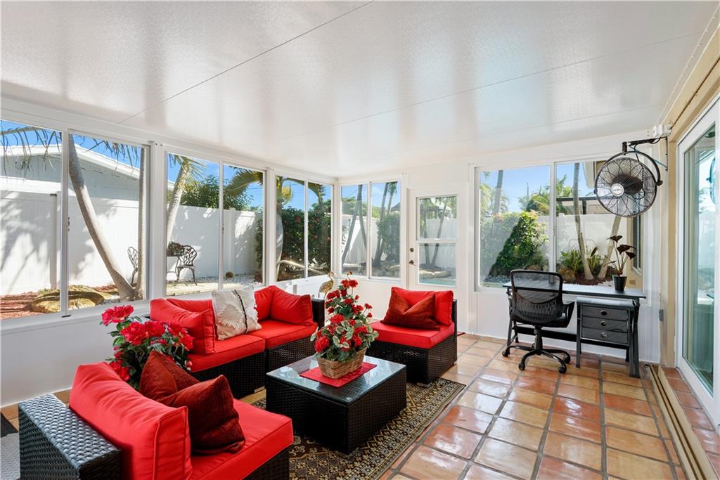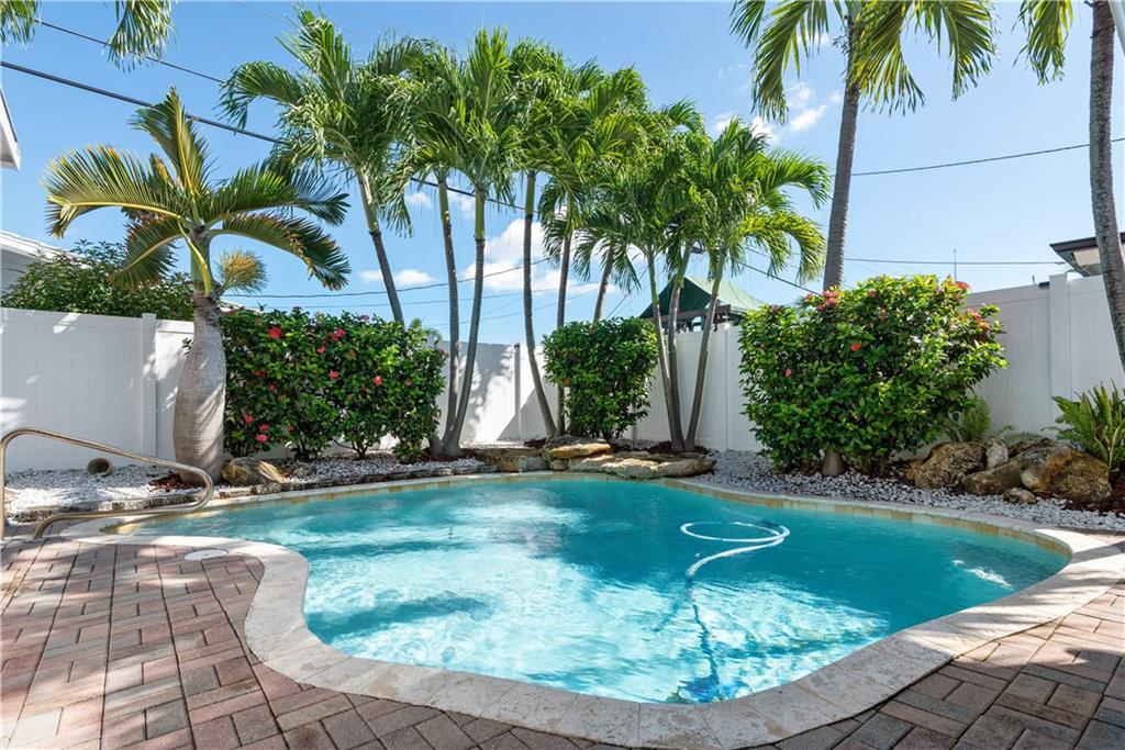 You must see this newly updated 3BED/2BA pool home w/ single car garage and new glassed in back porch. The backyard features fruit trees, salt water free-form pool with water fountain, all new pool equipment and multiple seating areas all surrounded by new pvc fencing for privacy. Upgraded sprinkler system, outdoor lighting and all hurricane impact windows & doors. Inside new A/C system(2020), tankless hotwater(2016), new tile flooring throughout, new Samsung kitchen appliances (including gas stove), new LED recessed lighting and state of the art security system. Primary bath w/ steam shower. Laundry room/pantry is inside the home (not in the garage). This well maintained home is also equipped with a generator, storage shed & natural gas. Both interior and exterior were recently painted.