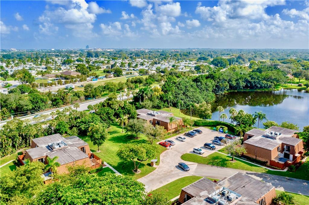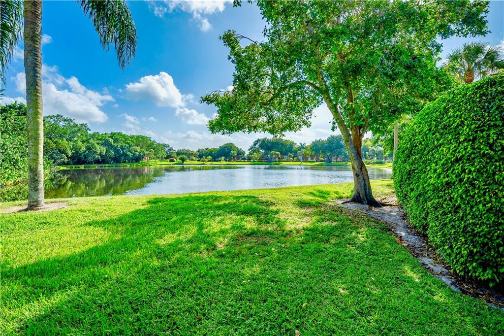 Best Views in the Neighborhood! This Updated Lake Front FEE-SIMPLE Townhome features: Spacious Bedrooms, Oversized Closets, Matching Cabinetry & Granite Throughout, Balconies with Lake & Garden Views, and Patio with Storage & Privacy Fence. New Kitchen Appliances & AC. Full Size Washer and Dryer. Locking Accordion Shutters. Conveniently Located in an Excellent School District and a Short Distance to Shopping and Entertainment. Low HOA Fee Includes: Membership to Pine Island Ridge Country Club with Residents Only Golf & Restaurants, Basic Cable, and Building Exterior.