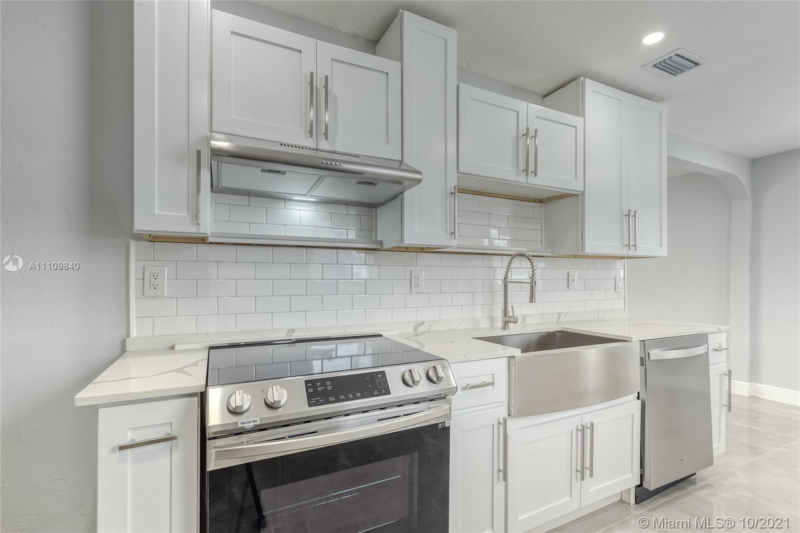 This is a charmingly updated home that offers 3 bedroom and 1 bath, quartz counter tops, farmers sink, ss appliances, new shaker kitchen cabinets, recessed lighting, tile floors throughout, ceiling fans in all bedrooms, organizers in the closets, freshly painted interior and exterior, circular driveway with plenty of parking, and a newer pvc privacy fence with two entrances big enough for a boat, rv, large truck...etc, and a spacious backyard. This home is a jewel and won't last long. Close to highly rated schools, 441, the Turnpike, I95 and other major highways for easy access throughout South Florida.