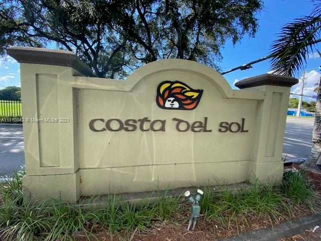 Enter into this extremely spacious townhouse where your eye immediately catches the view of the golf course and the lake, the lush landscape and mature trees. Put in your own flooring and decorator's touches throughout. Large kitchen w/solid wood cabinets, pantry, stainless steel refrigerator open to living/dining rm. Both bedrooms, 2nd fl, each with private bath, also huge terrace in front room. Recent AC. Tiled and screened patio/pocket sliders. Covered carport. Costa del Sol is gated and secure. Tennis, play area, pool, club house. Golf course winding throughout the community - a beautiful setting! Internet, cable, roof, insurance and more included in monthly fee.