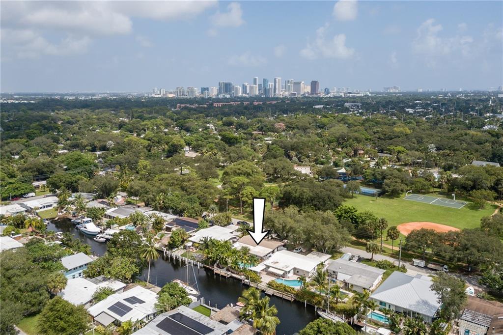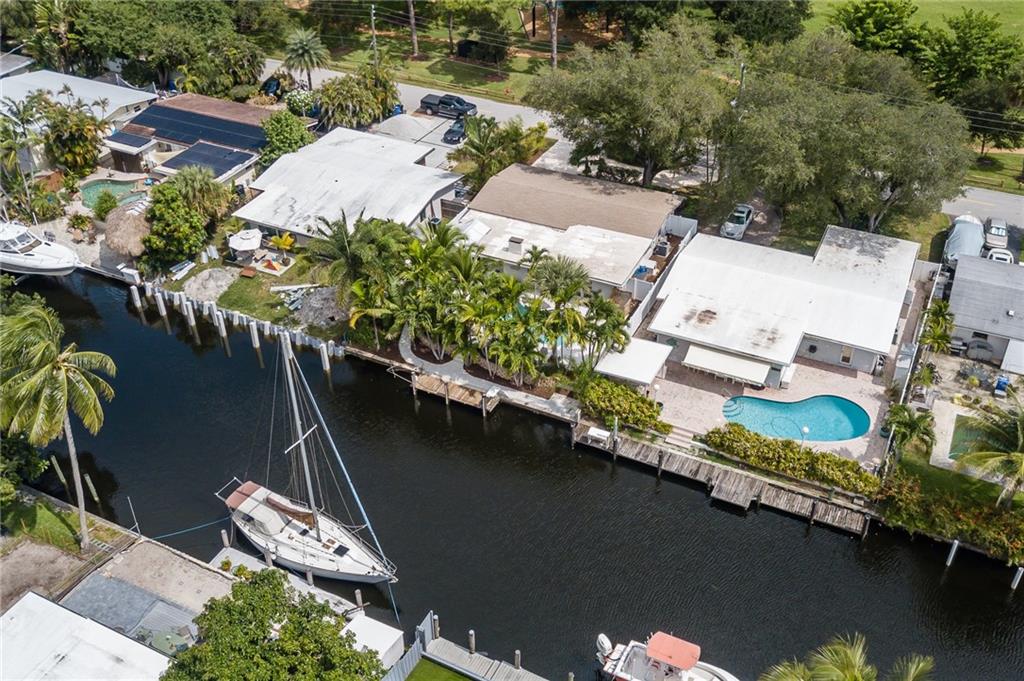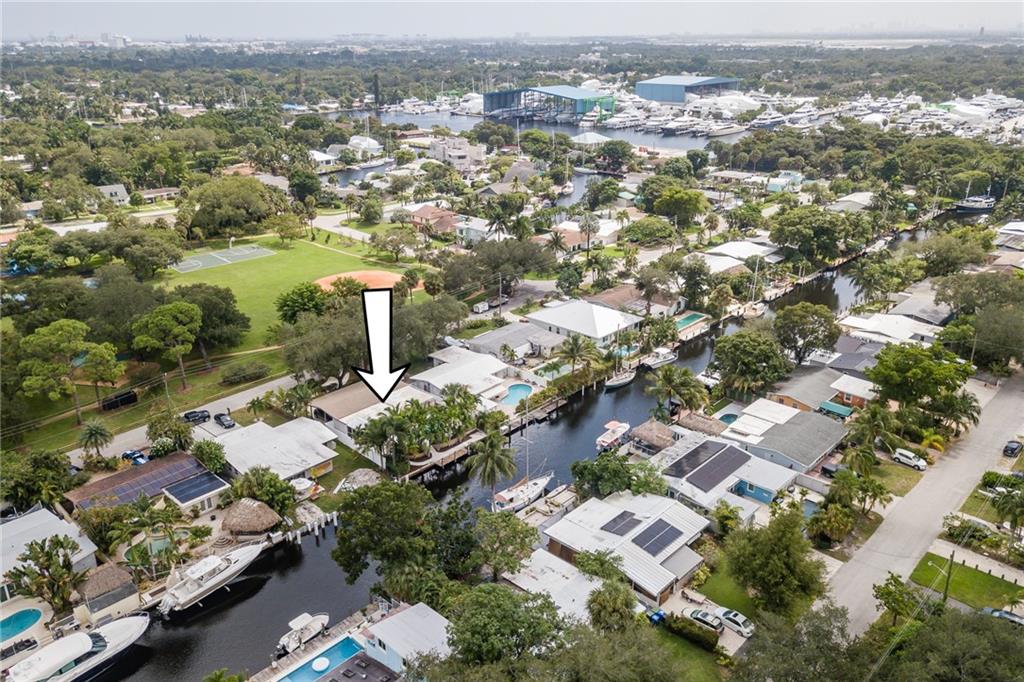 Opportunity to own a truly unique lot in Shady Banks Directly on the beautiful 5 acre park surrounded by mature River Oak trees. Backyard is paradise with outdoor shower, pool, retaining wall, dock and 60 ft of deep water no fixed bridges ocean access. This home features impact windows and doors throughout-tons of windows, beautiful terrazzo, screened in porch off of pool deck and a carport. Shady Banks is an unbelievably convenient hidden gem in Fort Lauderdale. Home to two great parks. One 5 Acre Park w/ Basketball, Volleyball, Tennis, Baseball, Yoga Center, Kids Playground and Exercise Path & waterfront preserve great for dropping kayaks or paddle boards. 1.5 Miles to 2nd Ave. Restaurants and Performing Arts Center, 1.8 miles to Las Olas Shopping and dining, and under 4 Miles to Ocean