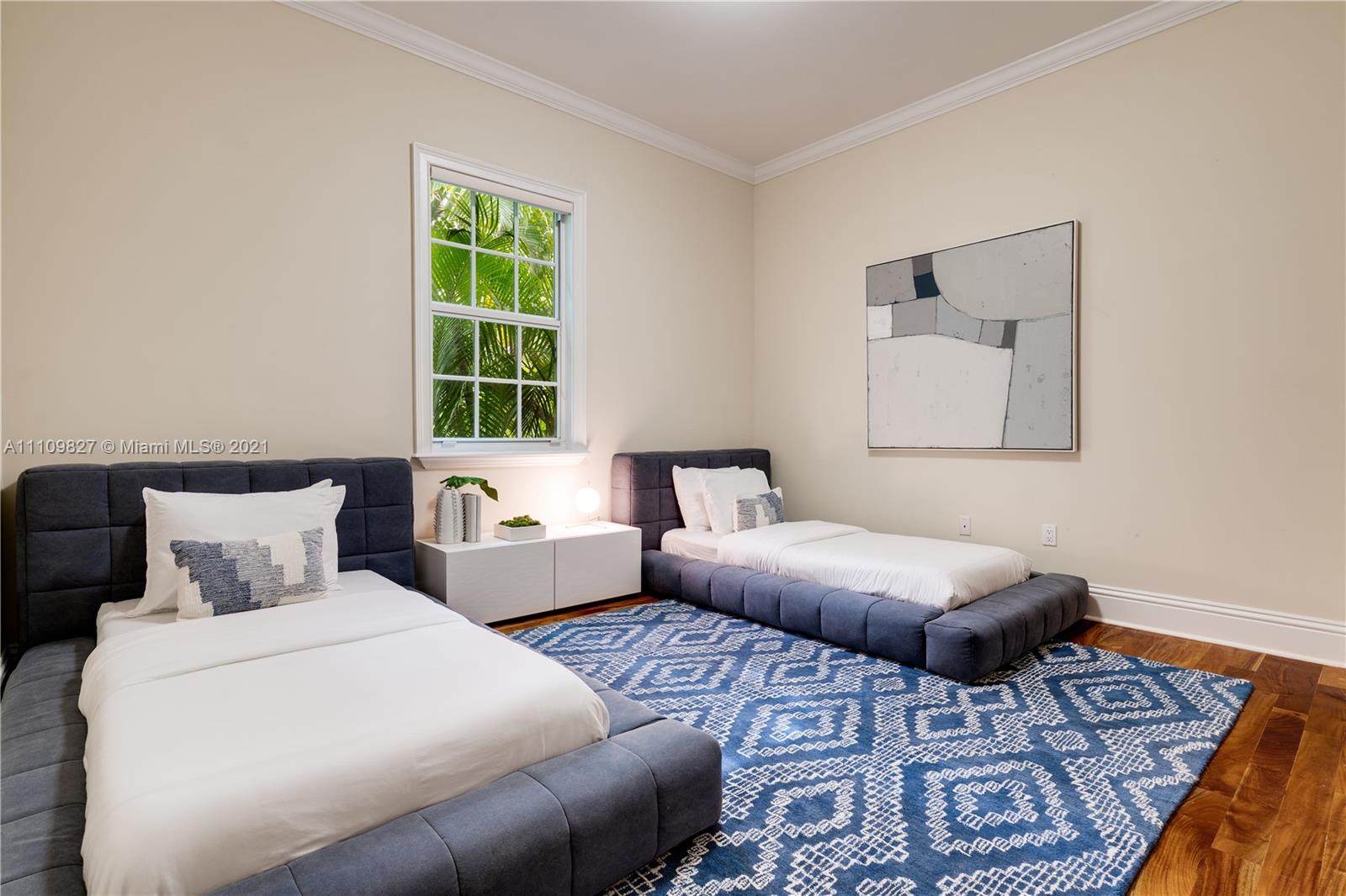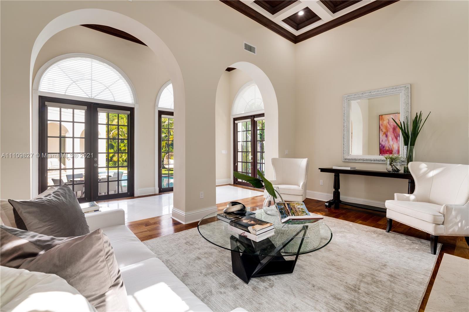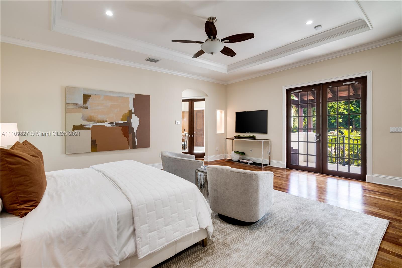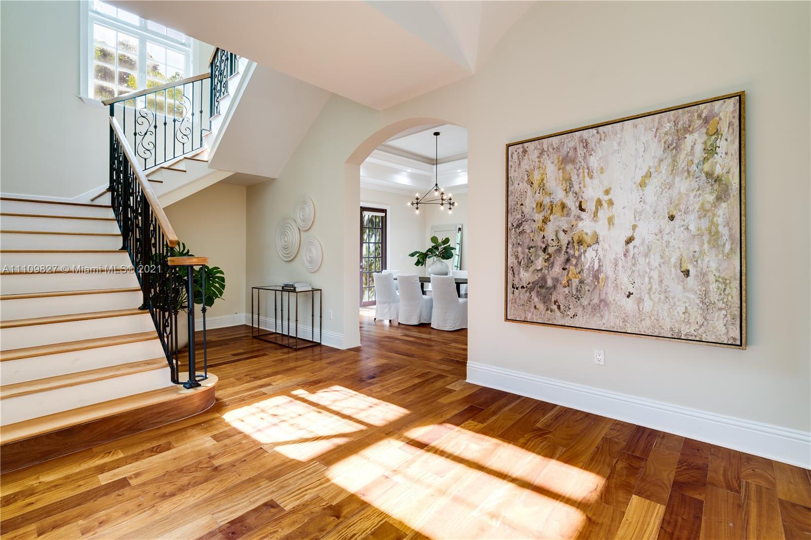 There's a magical intersection where Coral Gables and Coconut Grove meet, there you'll find this Tuscan-inspired residence that plays tribute to classical Mediterranean architecture while embracing modern sensibilities. Built in 2008, this handsomely designed two-story home impresses all with gleaming hardwood floors, fireplace, coffered ceilings, bold arches, and a charming ambiance. The formal dining room is large and gracious and adjoins a large kitchen/family room with an eat-in bar. All bedrooms are ensuite. The primary bedroom has two full baths and two generously sized walk-in closets - perfect for storing copious amounts of resort wear that you will undoubtedly wear year-round in the glorious pool and patio area. Impact doors/windows & room for elevator. A Very Special Home.