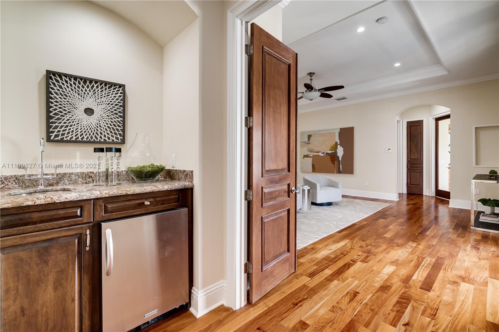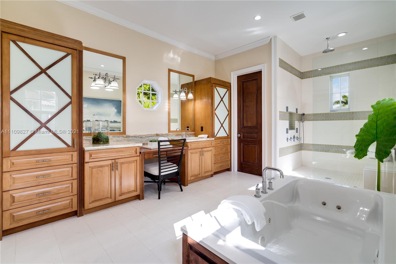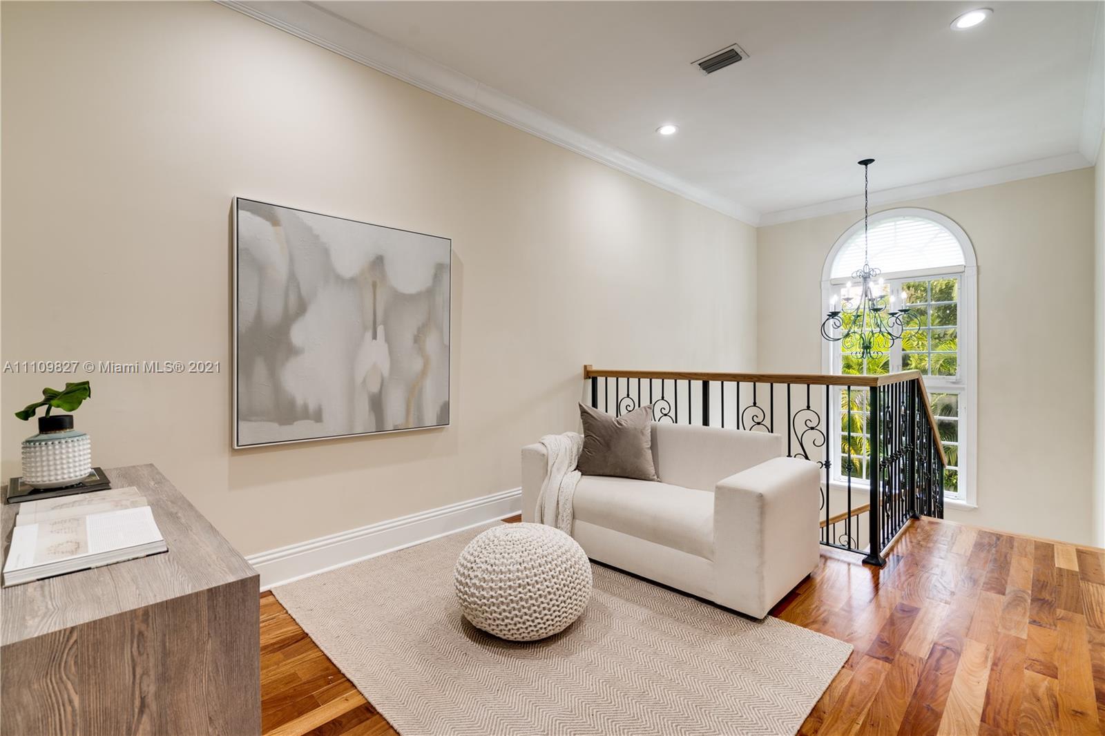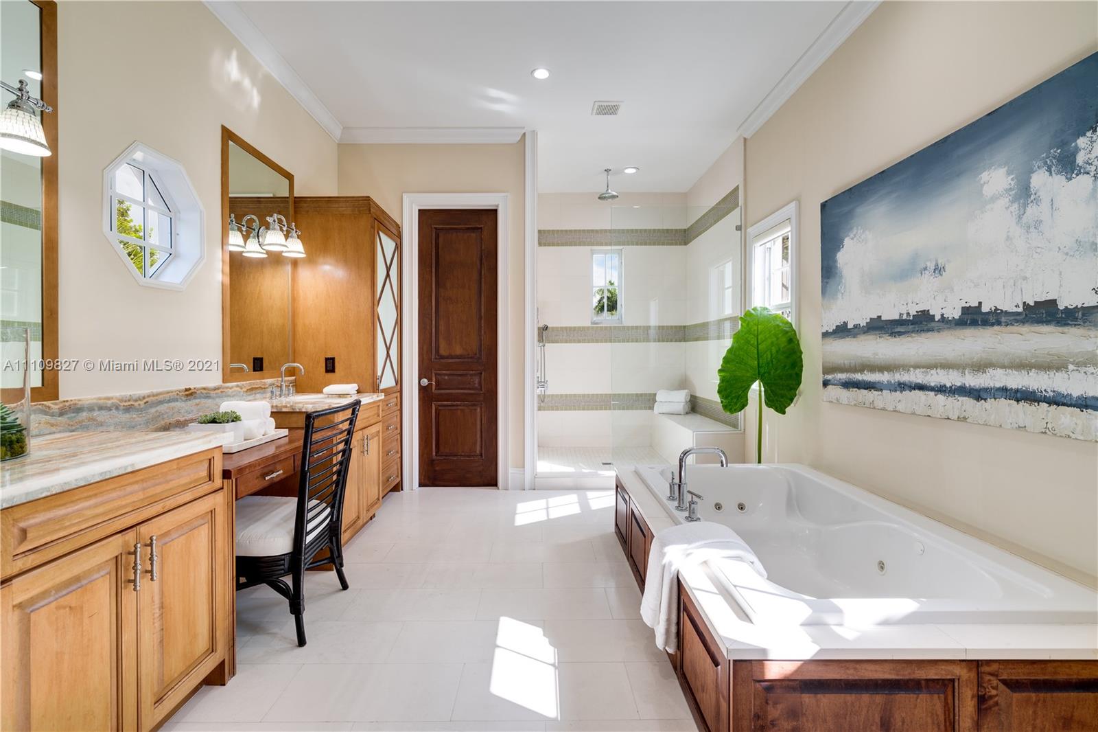 There's a magical intersection where Coral Gables and Coconut Grove meet, there you'll find this Tuscan-inspired residence that plays tribute to classical Mediterranean architecture while embracing modern sensibilities. Built in 2008, this handsomely designed two-story home impresses all with gleaming hardwood floors, fireplace, coffered ceilings, bold arches, and a charming ambiance. The formal dining room is large and gracious and adjoins a large kitchen/family room with an eat-in bar. All bedrooms are ensuite. The primary bedroom has two full baths and two generously sized walk-in closets - perfect for storing copious amounts of resort wear that you will undoubtedly wear year-round in the glorious pool and patio area. Impact doors/windows & room for elevator. A Very Special Home.