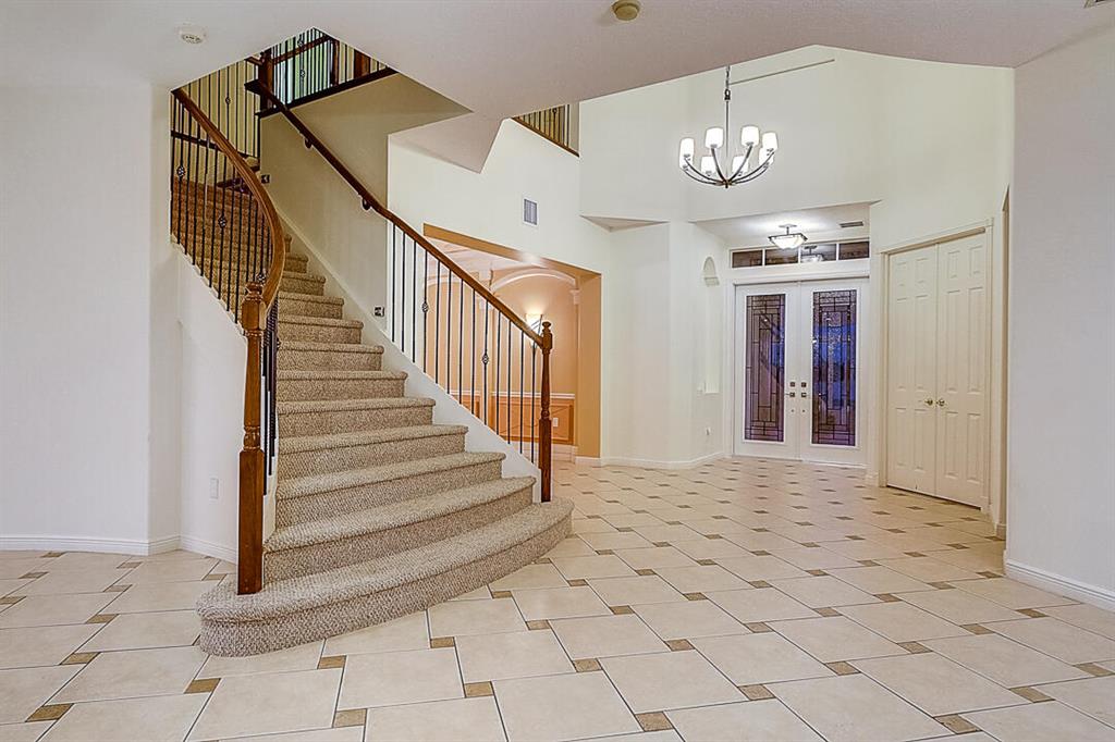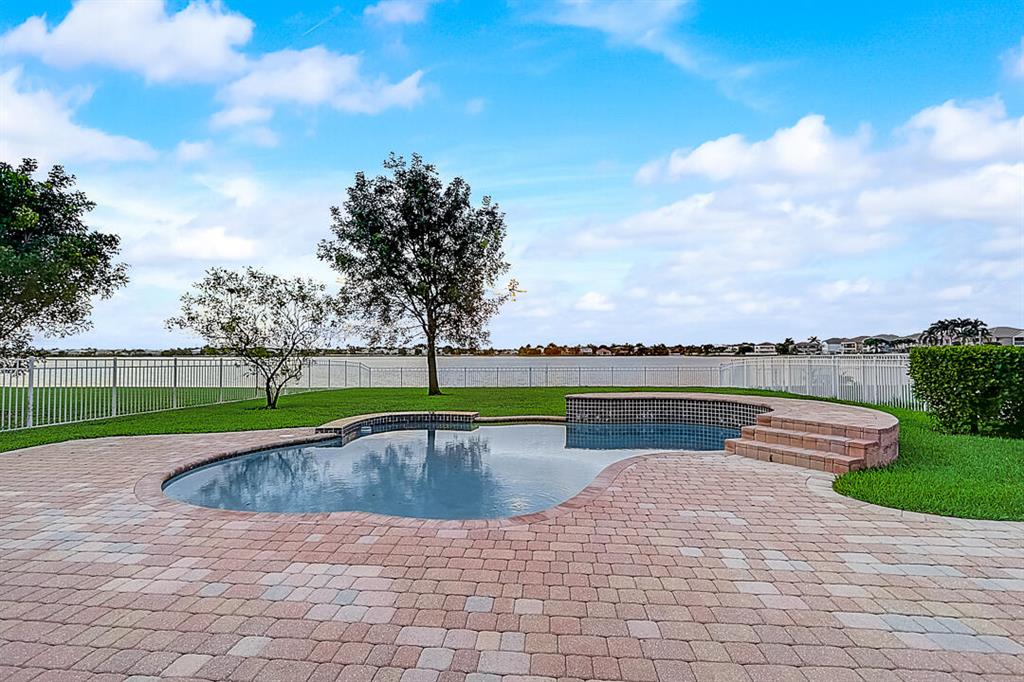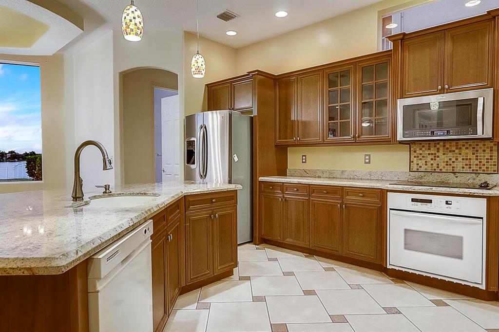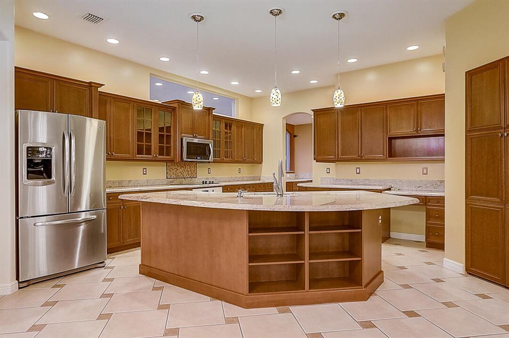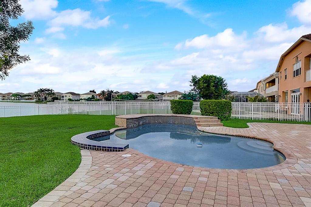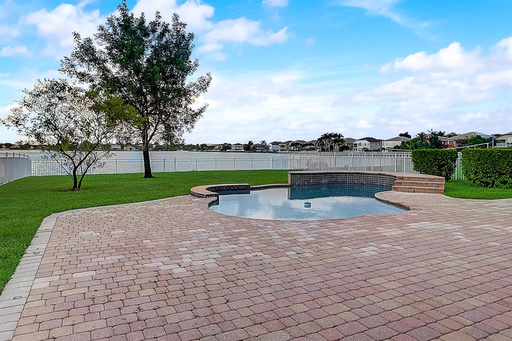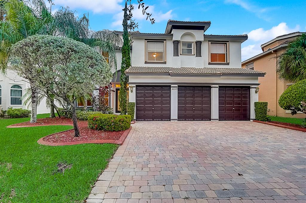 This Miramar two-story home offers an in-ground pool, granite countertops, and a three-car garage.