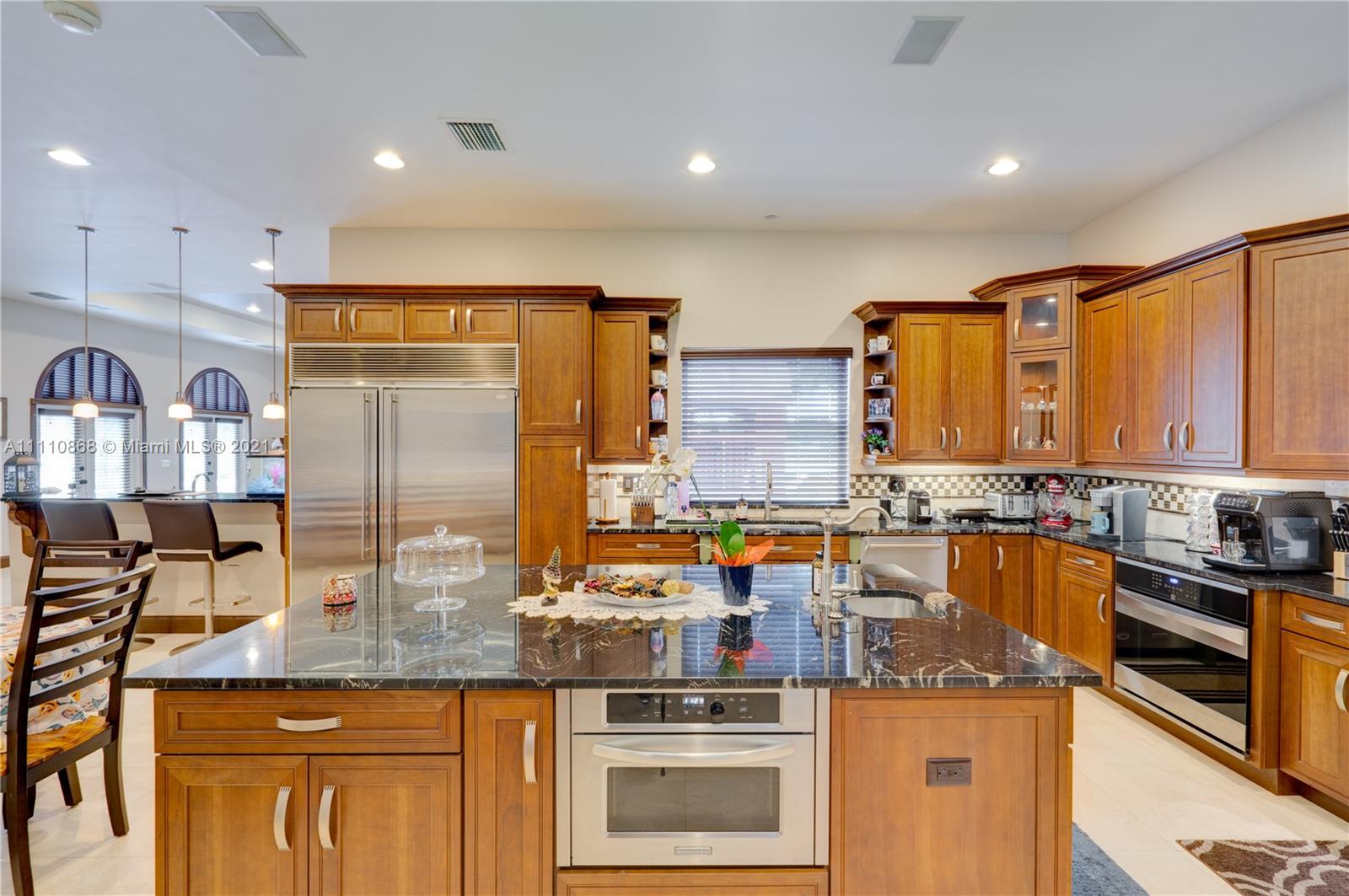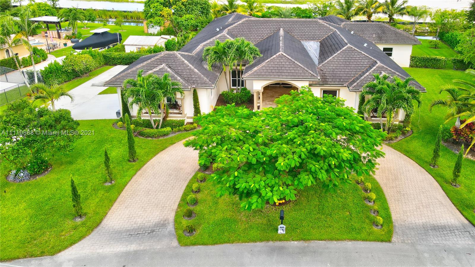 Luxurious custom built home features 4 bedrooms, one large master bedroom and 3 bedrooms, 3 full bathrooms & 2 half bathrooms, 2 living rooms, 1 dining room, 1 playroom, 1 office. Large spacious chefs kitchen (20x18) with the finest custom cabinetry, inbox appliances & open floor plan. Impact windows & doors with porcelain and tile flooring throughout. Entertain in oversized living areas with volume/vaulted ceilings or on the expansive patio featuring a resort style heated pool with jacuzzi, with outdoor kitchen with sink, gas BBQ and dishwasher. Large Garage can contain two large car/van. Two Outdoor garden storage, complete this beautiful house. No HOA, no restriction for your boat, RV. Smart home with music speakers and light control with app. Kids playground area.