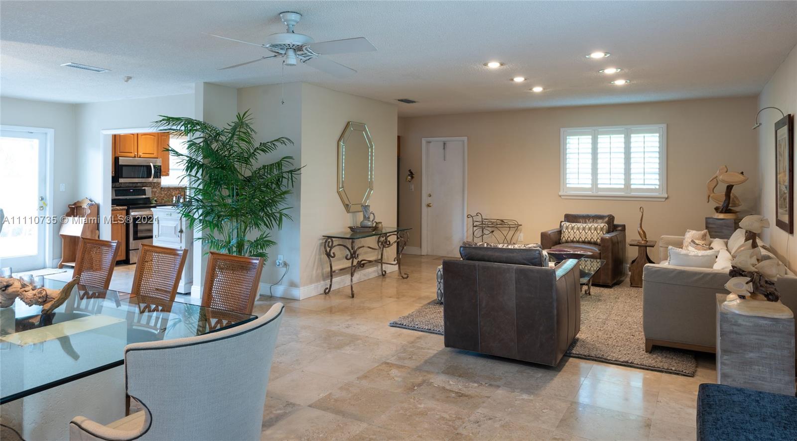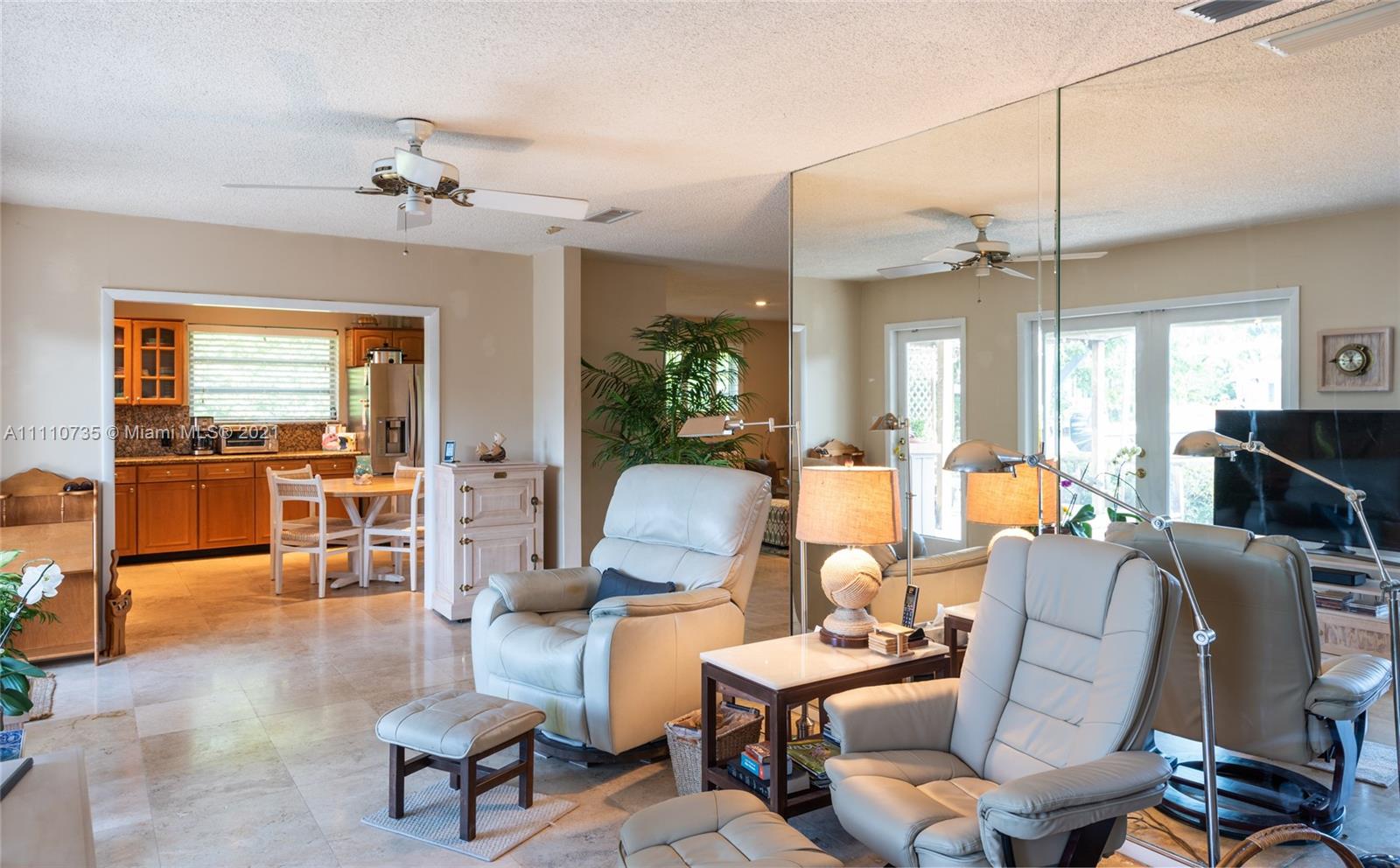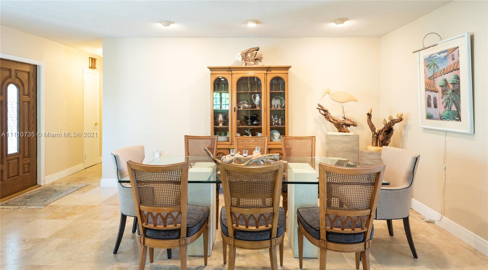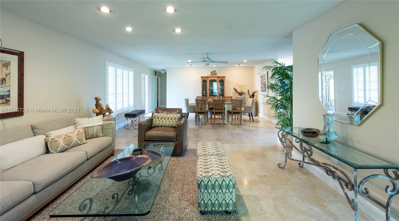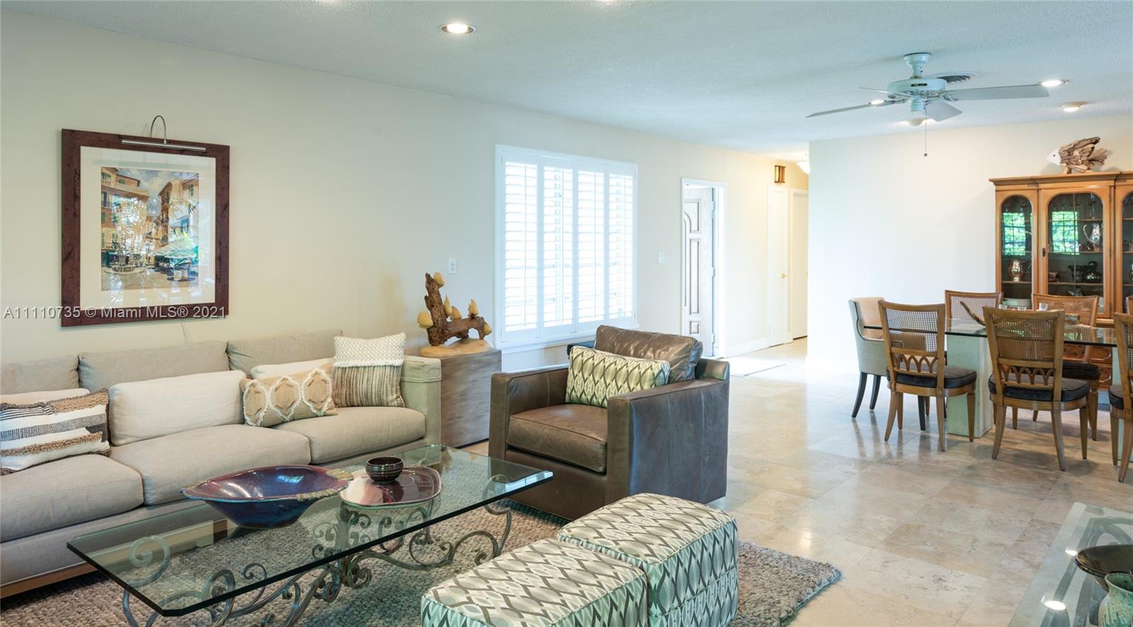 Beautiful light, bright, and airy 3-bedroom 2-bath waterfront home with backyard southwest exposure in gated Sans Souci Estates. Open floor plan and French doors ideal for indoor/outdoor living. Marble floors in living area and wood floors in bedrooms. Eat-in kitchen with granite countertops, wood cabinets, and stainless-steel appliances. Outdoors is a Floridian paradise with gazebo, wood deck and lush tropical foliage overlooking the tranquil waterfront with bay breezes. Private dock and davit on 75 feet of protected deep canalfront with ocean access and no fixed bridges.