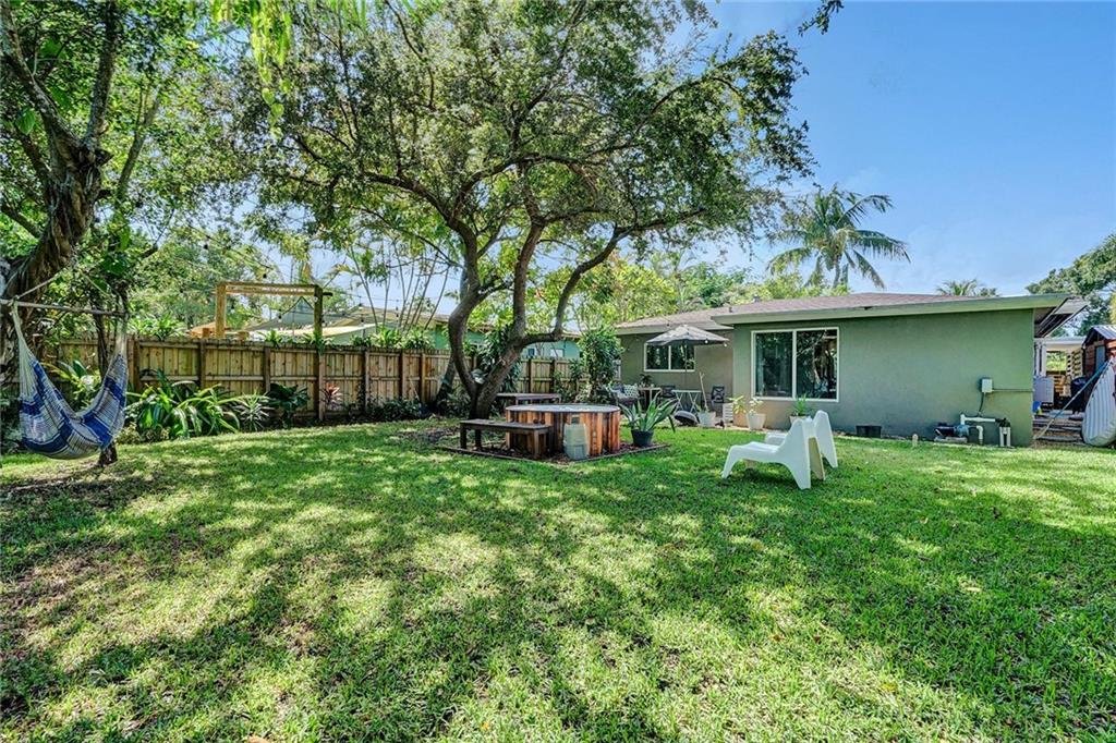 Tropical mid-century home in the heart of fort lauderdale very convenient to downtown, Wilton Manors, beaches and easy access to I-95. This home has an open concept kitchen/living and dining area and has many upgrades including all hurricane impact windows and doors, lots of light, new wood laminate floors throughout the house, hot tub in the very large and tropical backyard, updated bath and kitchen with brand new stainless steel LG appliances and crown molding. The house is very cozy and has many great outside spaces for entertaining and a great place for pets. Entire property is fenced and secure. A brand new never used generator comes with full price offer. Sprinkler pump is brand new with a well and roof is in great shape. AC is only a few years old.