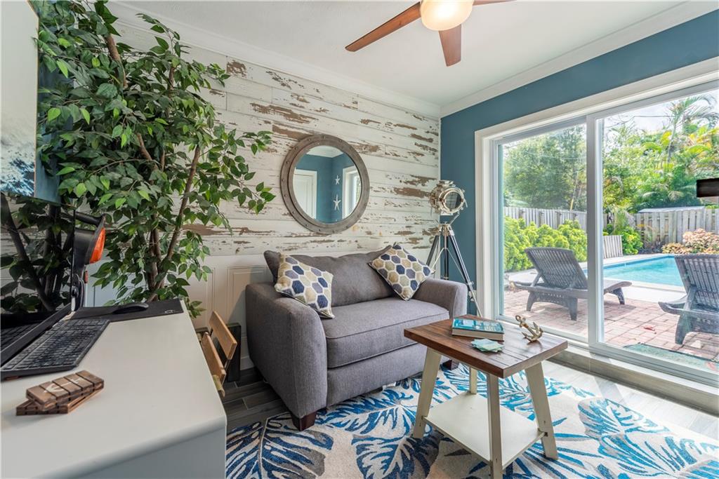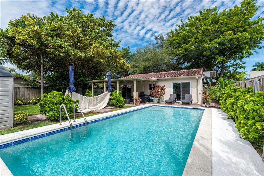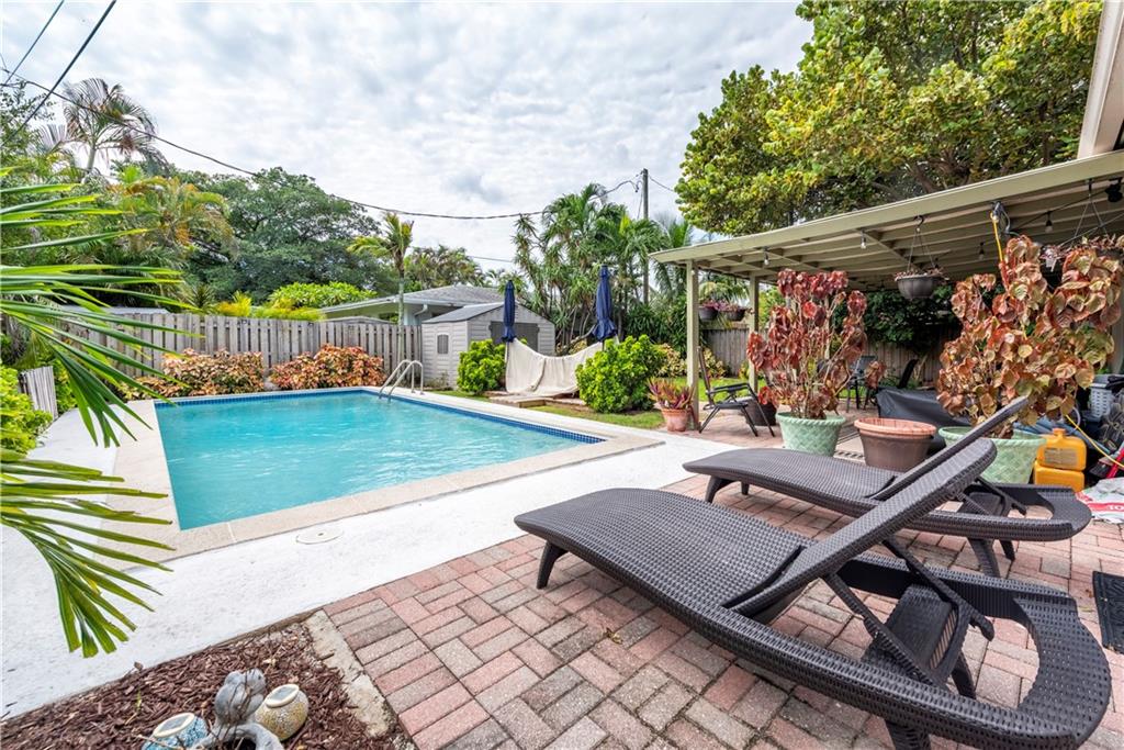 Stunning 3 bedroom 2 bath pool home in highly desirable Poinsettia Heights with stylish contemporary finishes throughout, including chef's kitchen and cooking island, porcelain wood floors, beautifully landscaped front and back yards, pavers throughout the property including circular drive, and impact doors and windows. Large impact sliding doors open this home from the master bedroom, the office, and the great room to the inviting pool area and outside patio. This home is less than two miles to the ocean and one mile to Wilton Drive; centrally located yet quiet and private.