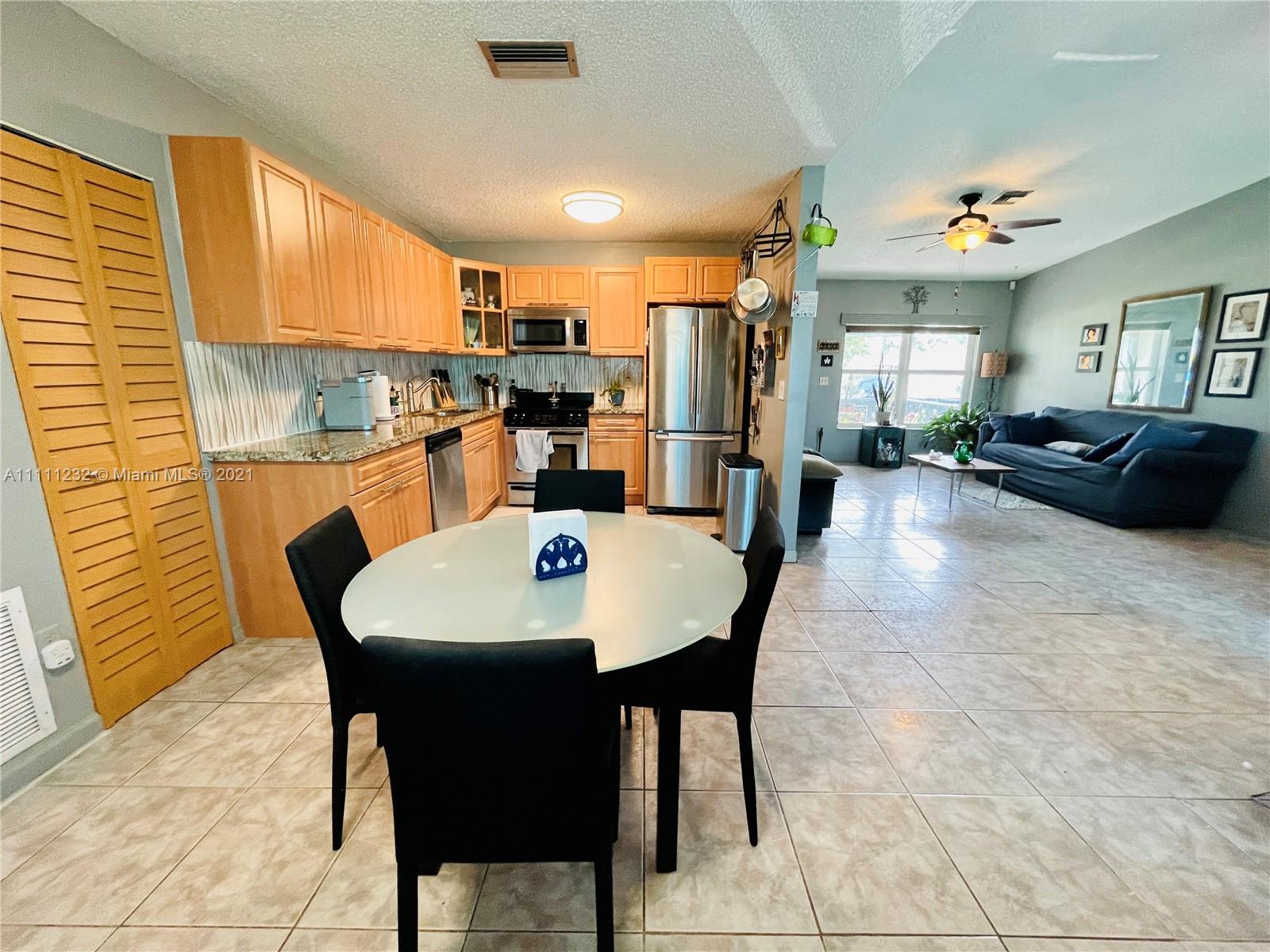 Your dream home awaits! Well-maintained 3 bedroom, 2 bathroom home with a private back yard oasis in Hollywood, Florida. As you enter the home you are greeted by an open-concept living room, family room and kitchen with ceramic tile floors and vaulted ceilings. You will fall in love with the updated kitchen with attractive cabinets, stone countertops and stainless-steel appliances. There is a large pantry and a dining nook plus a laundry room. The master bedroom has a sizable wall-to-wall closet and an ensuite bathroom w/ walk-in shower. The family room has French doors which open to a paved patio and a winding pathway leads you through the beautiful back yard oasis, landscaped with a variety of plants and trees along with a shed and a second sitting area.