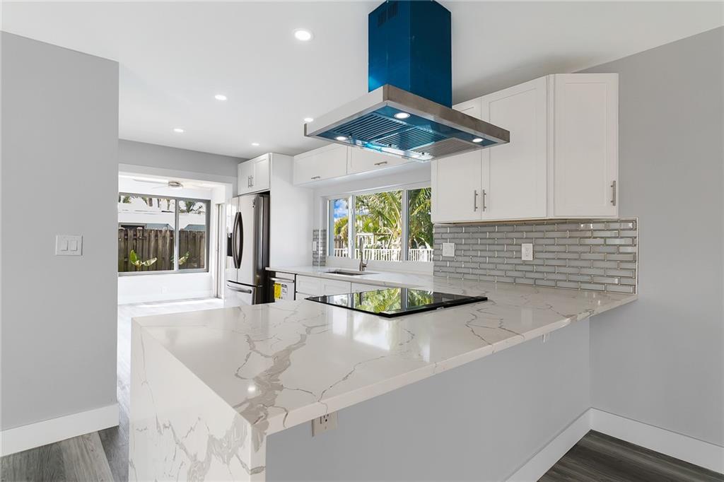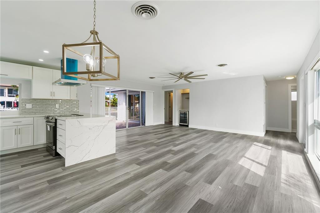 Beautifully remodeled waterfront home with ocean access in desirable Cypress Harbor! This 3 bed 2 bath home boasts 79' of water frontage and an incredible outdoor oasis. Only 2 fixed bridges and the SE 5th ave bridge is currently being raised which will increase value. Entirely renovated with top of the line finishes including brand new...solid wood shaker style cabinets, quartz countertops, stainless steel appliances, washer/dryer, wine fridge, vinyl flooring throughout, travertine pool deck and front walkway, 20ft dock, impact front door and garage door, pool resurfaced with new pool pump, new electrical panel, fresh paint inside and out, mostly impact windows except for sliders, Water Heater 2021, AC 2016, Roof 2009. NO SHOWINGS UNTIL OPEN HOUSE