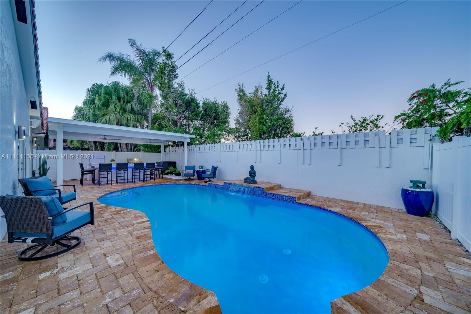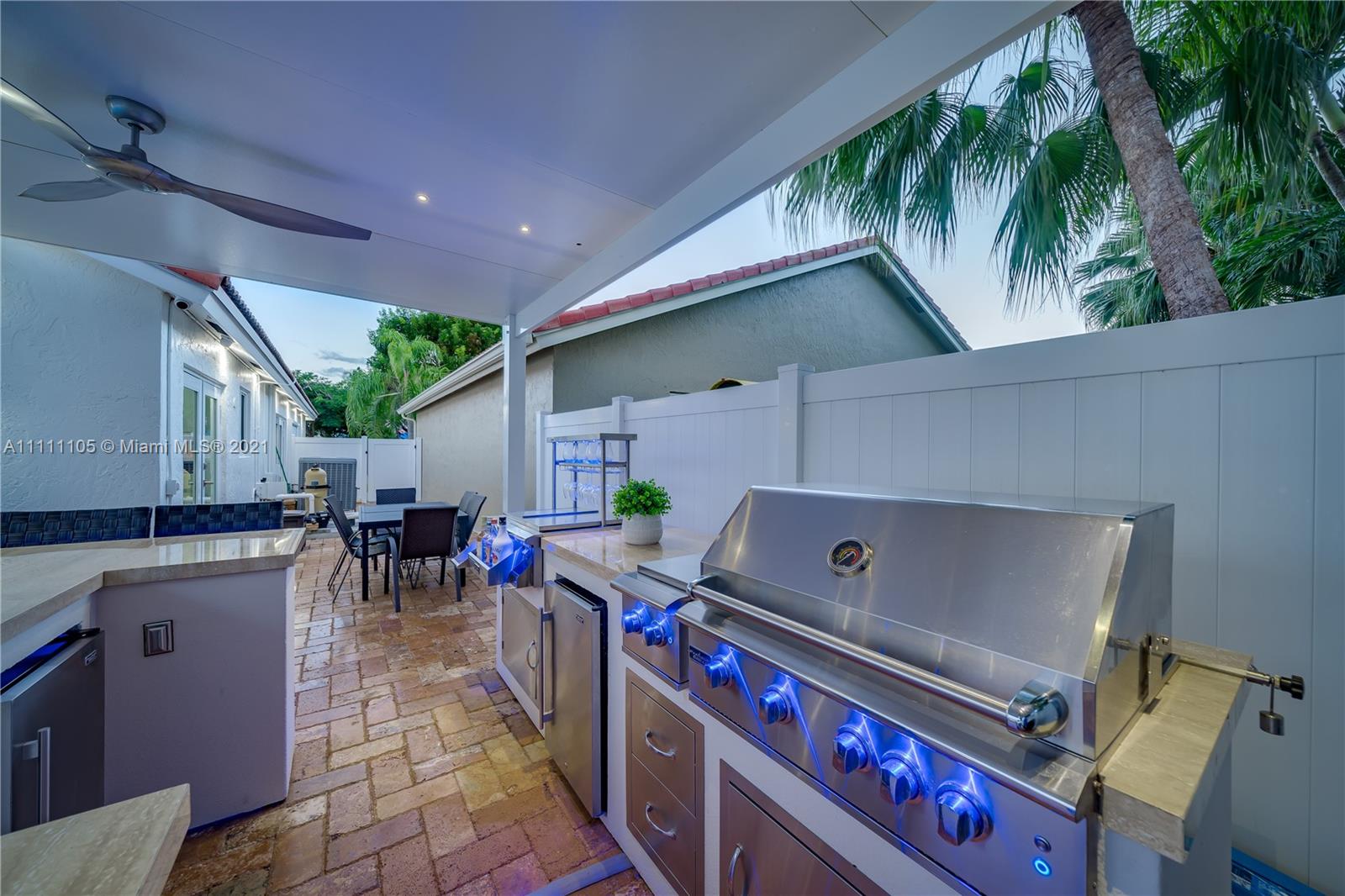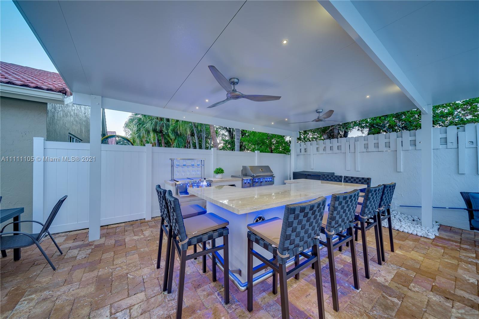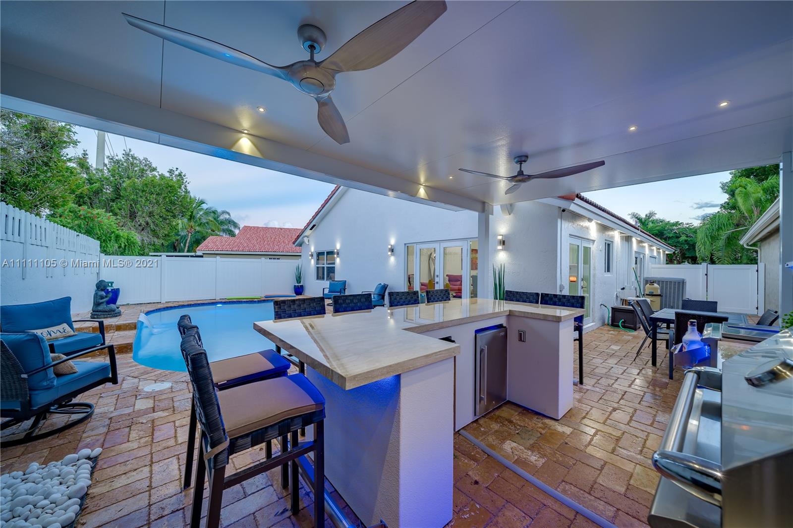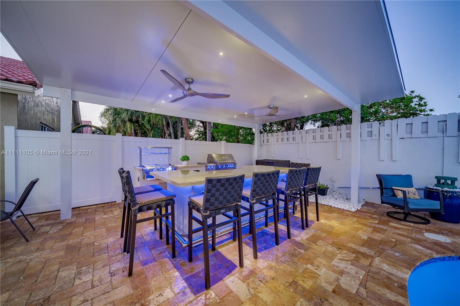 Beautifully fully remodeled 4/2 with Pool. Modern and Contemporary look. High Impact doors and windows, a new pool pump, also the pool was resurfaced in March this year, New Summer Kitchen with underground gas installation so forget about buying a gas tank, 2 mini fridge, wine fridge with dual temperatures in outdoor kitchen, travertine marble in patio, Vaulted ceilings, with LED Lights throughout and white glossy 32x32 porcelain floors. European Style white glossy Kitchen cabinets have an Open Floor concept overlooking the family room and pool. Quartz counters. Gas Stove, double over LG & fridge LG double ice maker are less than 1 yr, Gas Water heater/Gas dryer, smart outlet and switches in living area, kitchen and patio. Cable and Blast Internet included in HOA. Excellent schools.