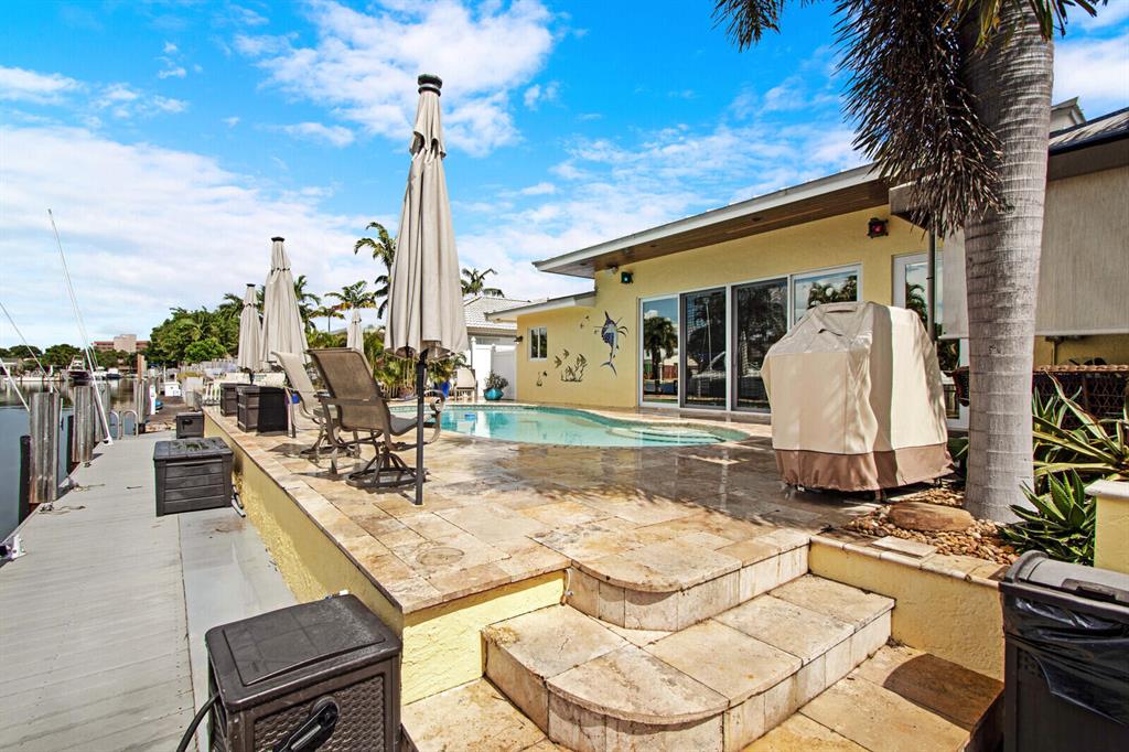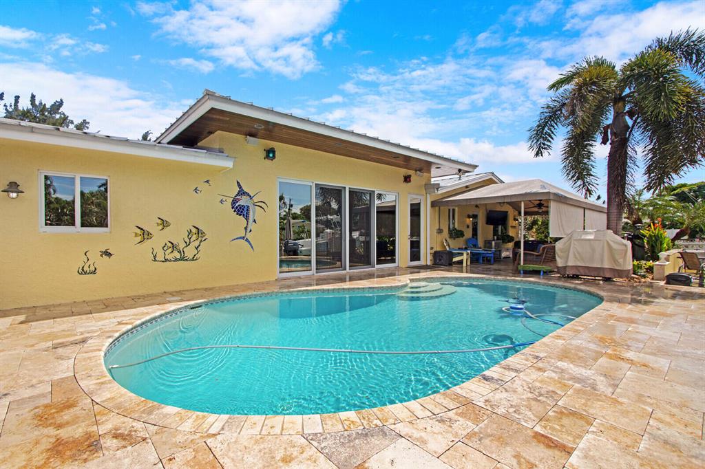 DON'T WAIT to see this beautiful WATERFRONT home in COUNTRY CLUB ISLES. In 2012, this home was REBUILT FROM THE STUDS including NEW ROOF: Galva-alum METAL ROOF .....The entry sets the stage with designer Mahogany double-doors. The foyer showcases the 12' volume ceilings as you enter the FORMAL DINING ROOM that will easily seat 14 and is open on both sides to expand the table when more friends and family arrive. Notice the OPEN FLOORPLAN and see all the way through the 8' sliders in the GREAT ROOM to the pool. Marble floors throughout are enhanced by tall wood trim, crown molding and baseboards. The EXTRA-LARGE KITCHEN is truly the center and open on 3 sides to living areas. The custom honed-leather texture granite countertops will catch your eye enhanced by the CHERRY WOOD CABINETS and