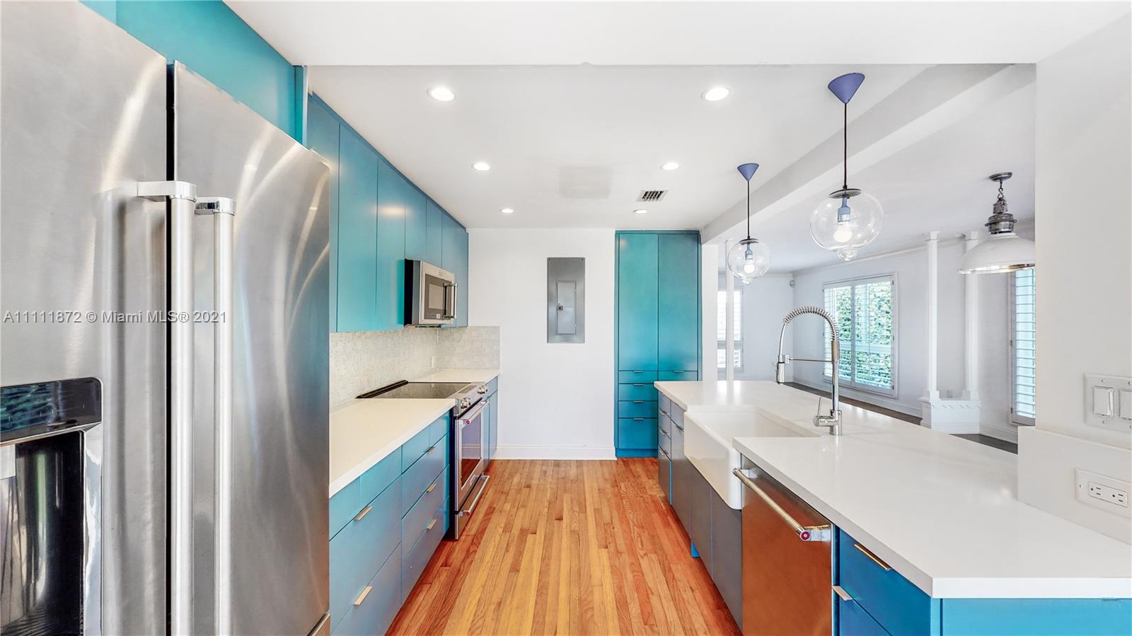 Rivo Alto two story single family located on Venetian Islands, Miami Beach. 4 Bedroom, 3 bath plus den/office - Double height living room with fireplace and wood flooring. Open floor plan leads you to a dining room and updated kitchen with Quartz countertops. New roof, AC system, impact windows and doors. Walled and gated with perimeter hedges, a circular travertine driveway with motorized gates. Separate structure for laundry and storage. All located walking distance from shops and restaurants in Sunset Harbor, and only minutes from downtown Miami. Full set of renovation plans available on request. Move in ready or reinvent this home further.