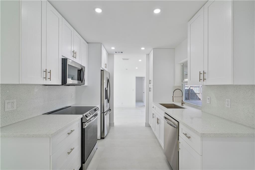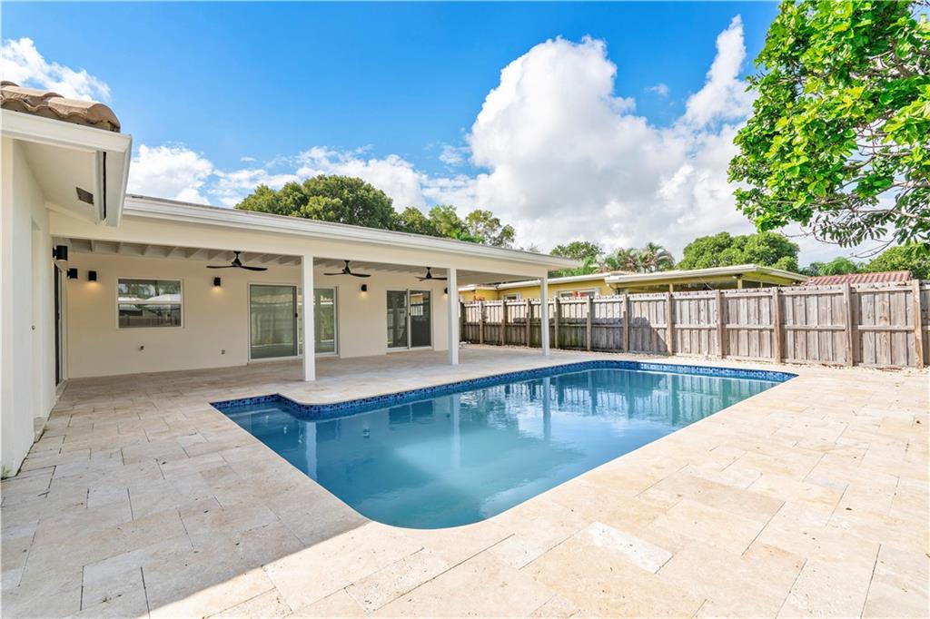 Welcome home to a COMPLETELY RENOVATED residence located in the highly desirable neighborhood of Imperial Point! This 3 bedrooms/2 baths/2-car garage POOL home features an open floor plan concept with impact windows/doors, porcelain floors and recessed lighting throughout. The new kitchen is equipped with new stainless steel appliances, white shaker cabinets and quartz counter tops. The 2 bathrooms were completely remodeled with white shaker cabinets and frameless shower doors. The fenced outdoor space offers a resurfaced pool, travertine throughout and a beautiful large covered area . The A/C is less than 2 years old, new water heater, new washer and dryer (stackable) and new flat roof. This house is ready for its new owners and their final touches to make it home!