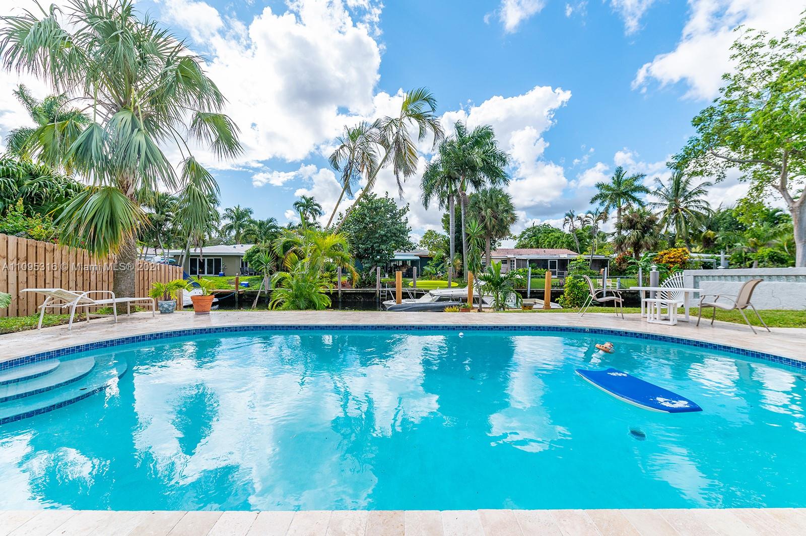 Amazing 3/2 WATER FRONT home with 2 car garage and below ground pool in Fort Lauderdale!!! Bring your boat to your private dock and get straight to the water with no fixed bridges. This home boasts 4 YEAR OLD ROOF, Hurricane impact windows, garage and doors. New beautiful white kitchen with shaker cabinets, stone countertops. Upgraded modern, bathrooms. The backyard has beautiful tiled patio with below ground pool that was resurfaced 6 months ago along with a new pool pump. New water heater and newer AC. The home has so much natural light and is a must see! Just bring your toothbrush and your boat! No fixed Bridges! Please note: Home has 1,933 square feet under air.