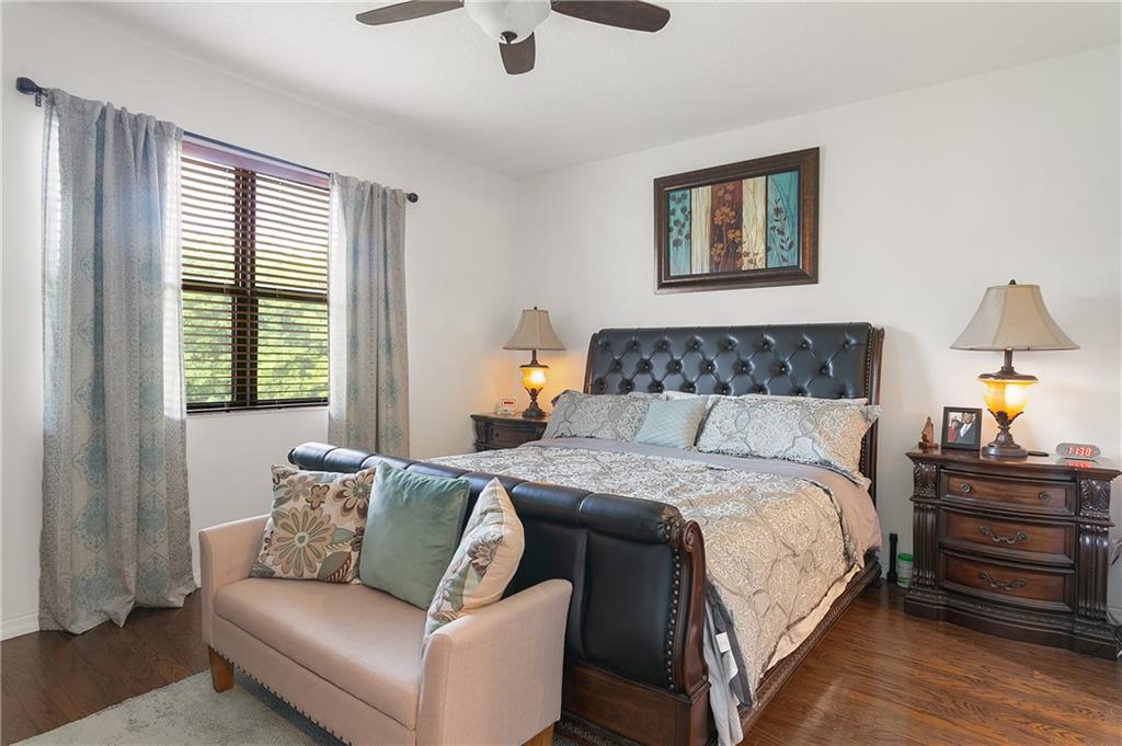 This stunning two-story home is on a large lot in a family-oriented neighborhood. From the open-concept kitchen and living space to the large backyard, there is plenty of room for the whole family to enjoy. The kitchen features stainless steal appliances, a double oven and upgraded cabinets. Wood floor throughout upstairs and on the stairway and tile flooring downstairs. The Master bedroom has both a walk-in closet and a second closet for extra closet space. For additional parking, guest parking spaces are conveniently located right across the street in front of the home. The property is one of the largest and most private lot in the community. This home is sure to go fast!