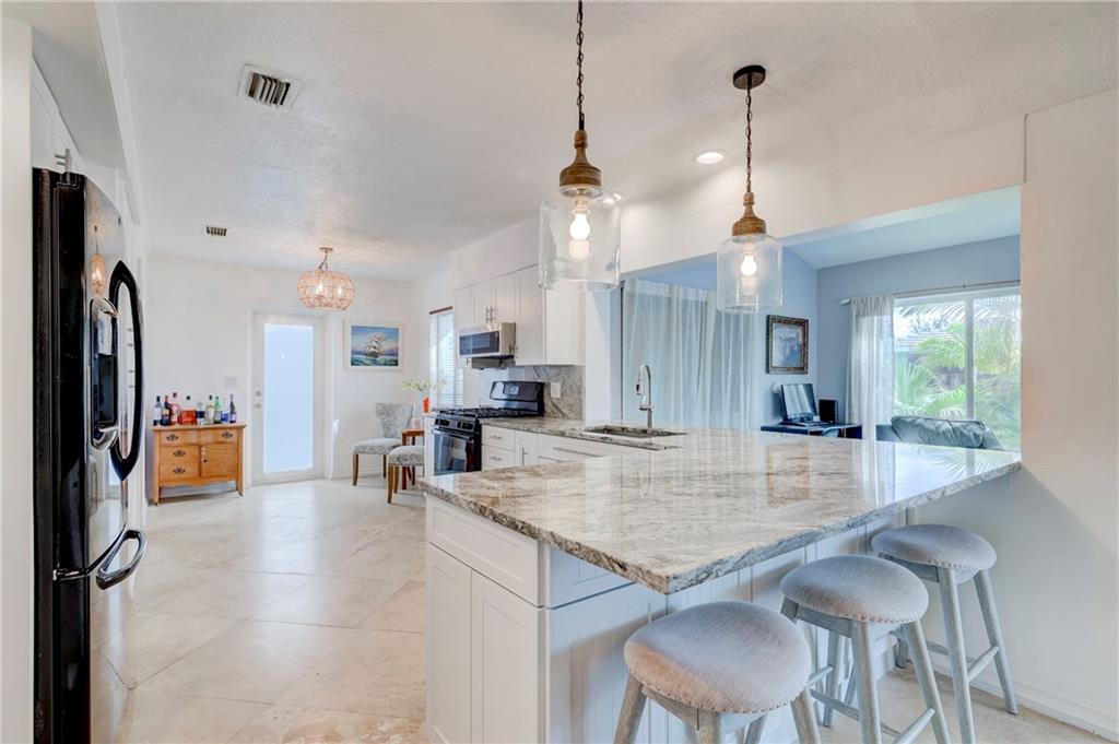 Spacious and updated home in Conner Estates. This 3 bed, 2 bath, pool home w/almost 1700 SqFt is located east of US1 and is move in ready. Recently painted in and out, newer impact windows/doors, pool refinished and gorgeous marble patio installed 2021. Refurbished terrazzo floors throughout most of the home with marble in kitchen/dining area and water proof Vinyl laminate in FL-room. The back yard is a tropical oasis for your escape or entertaining with screened in patio area. City natural gas is connected to tankless water heater, range, dryer and generator with auto transfer. Enjoy daily walks to beach only 1.5 miles away. Conveniently located near shopping, restaurants, golf and parks. Boat ramps are only 5 min. ramp and min. from the inlet.