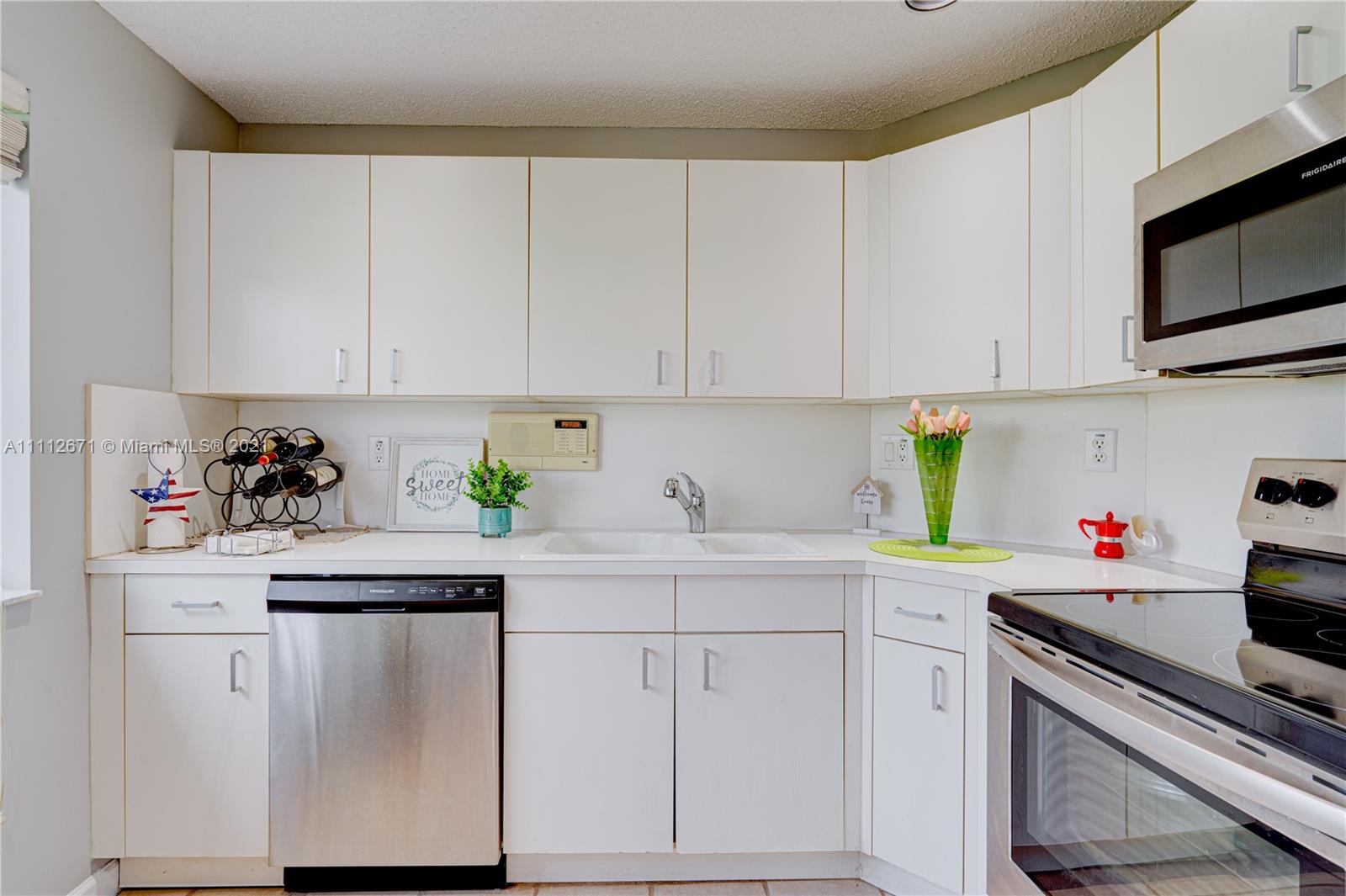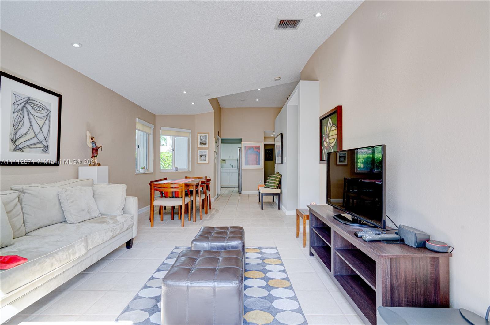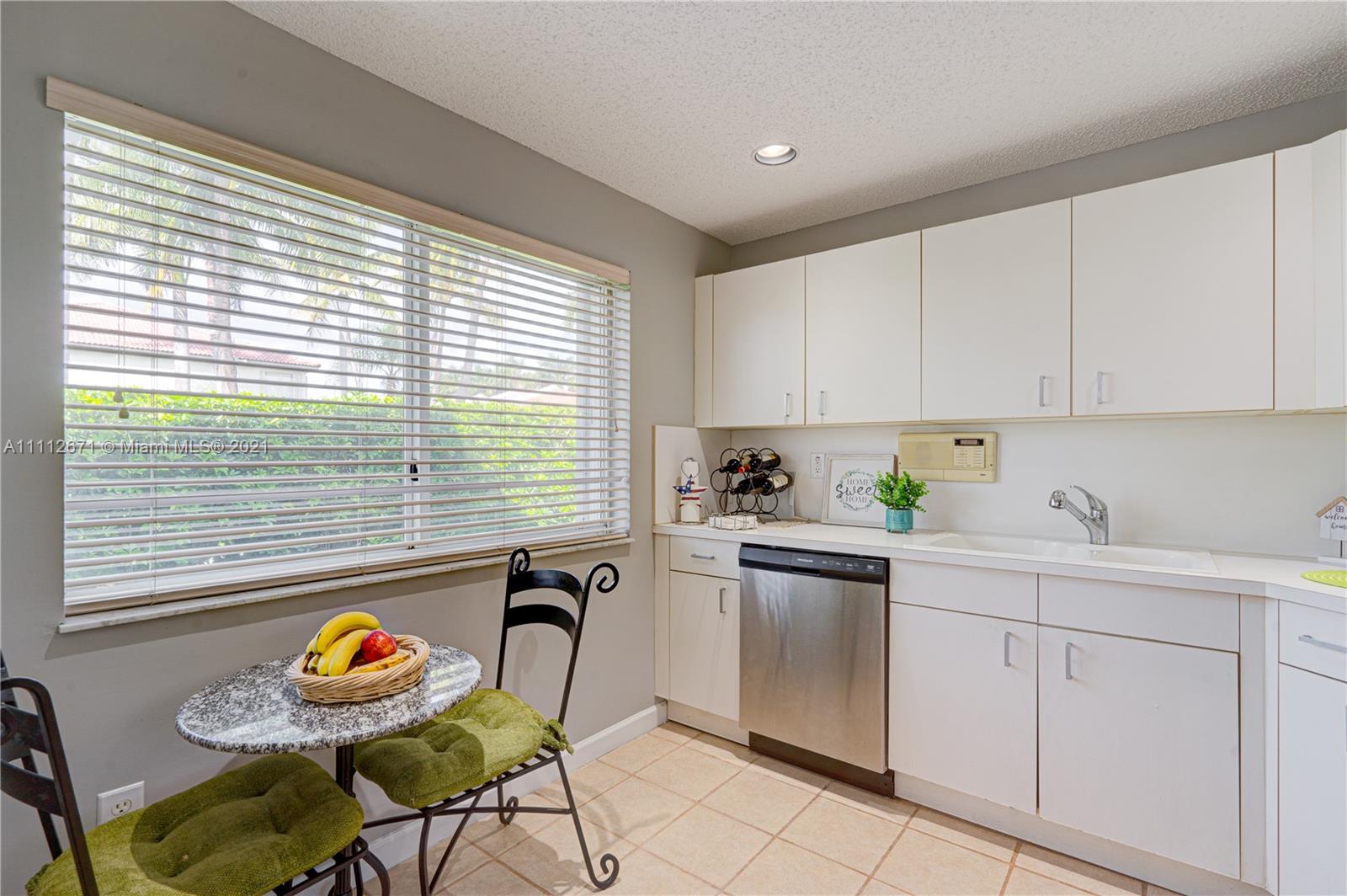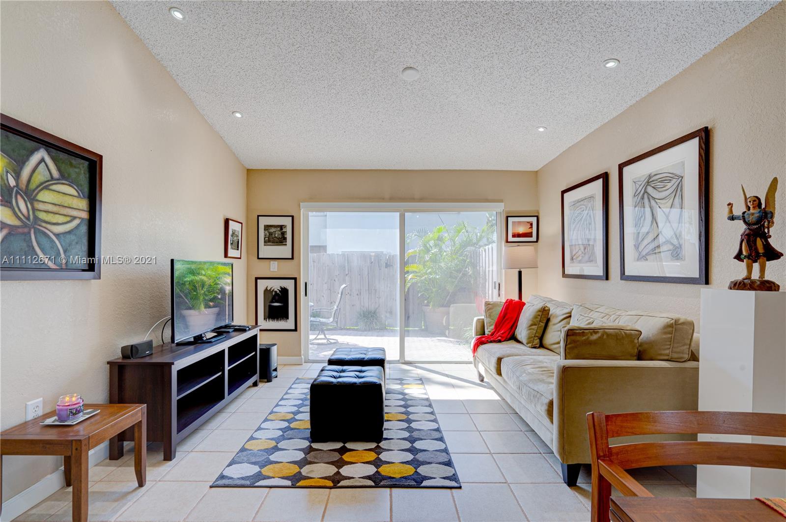 Located the Prestigious gated community of Doral Landings West famous for being a family oriented neighborhood with security guard 24/7. One block from the beautiful park “ Trails and Tails Park’’. Near A+ Schools! Less than a mile from Excellent Schools - 4 min Eugenia B. Driving To K-8 Center. This is a rare kind of home, hard to find ! Only a few in the Doral Area. 2bed/2bath spectacular PREMIUM CORNER Unit with a PERFECT - UNIQUE LAYOUT, beautiful ceiling's design, paved cute patio, accordion shutters and garage, perfect for any Buyer. Enjoy a cup of coffee or a Tea appreciating the beauty of the green! Moving Ready! Fridge and modern stainless steel appliances less than a year old. Inside 6 months A/C unit , new-modern washer and dryer ! Well-Maintained Garden! Low HOA $262 monthly.