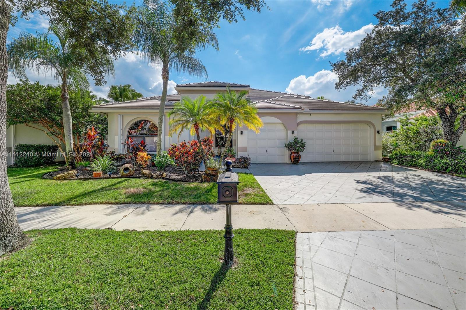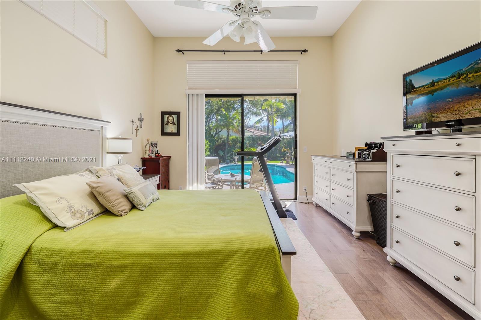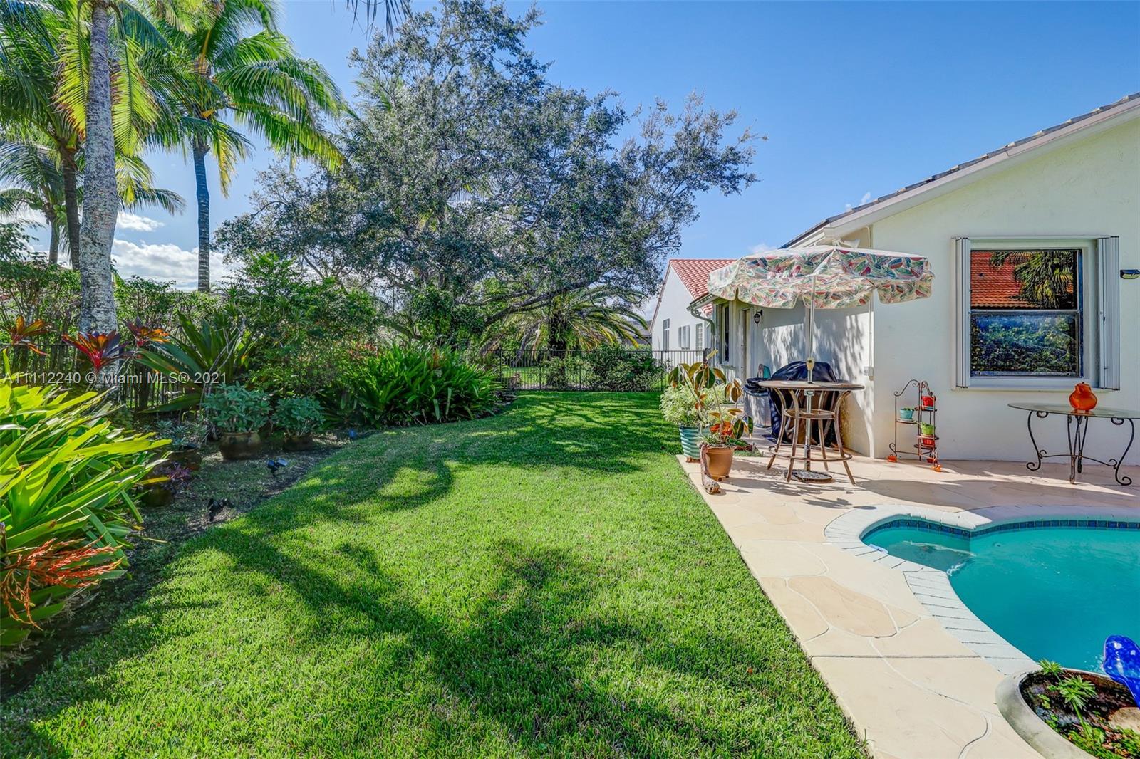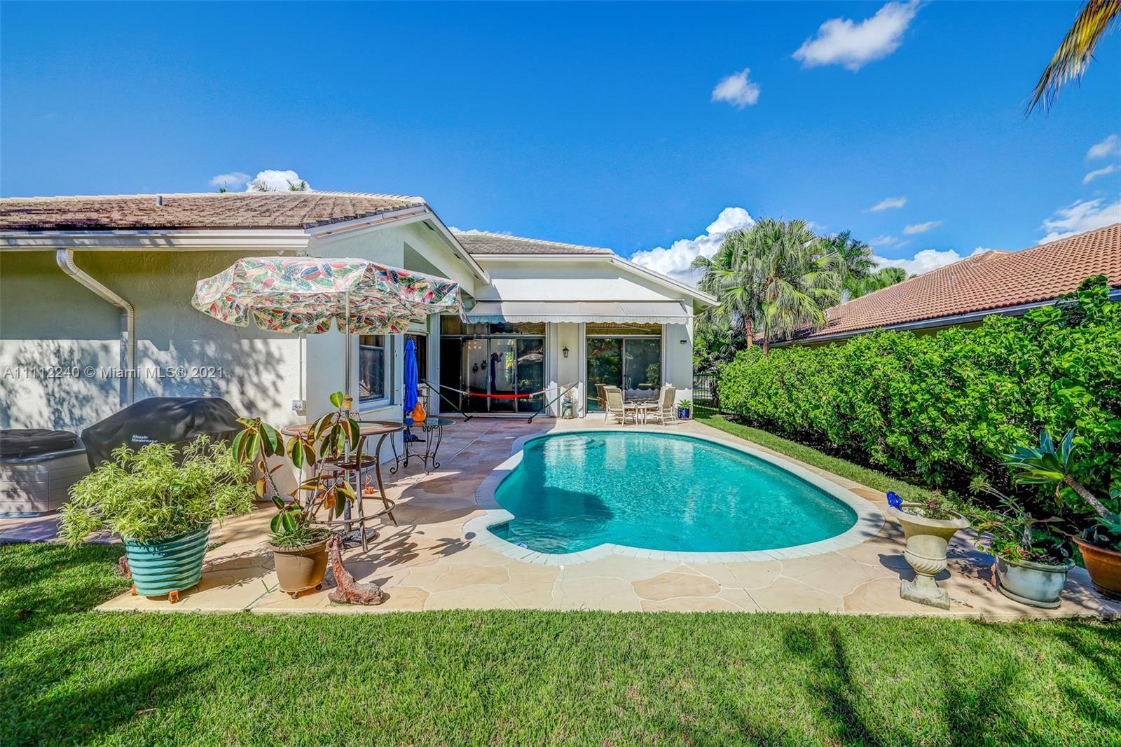 Elegant & turn-key one story in the exclusive gated Jasmine Island. This amazing 2,909 Sf living area home boasts 4 bedrooms + office that can be used as a 5th bedroom. 3 full baths, Pool, 3 car garage, accordion shutters. Spacious Master bedroom dble walk-in closet. Remodeled master bathroom (2021), dual sink. Open floor plan living/dining/kitchen w/wood cabinets, granite counter tops, stainless-steel appliances, & breakfast area. Laundry room under a/c. Wood laminate in bedrooms & tile in common areas. New custom baseboard. LED Recessed lighting w/dimmer. Recently painted. Auto sprinkler system. Large lot w/10,103 Sf, fenced & lushly landscape great for entertainment. Pool deck w/stamped concrete “A” Rated Schools District makes this property a great family home. New 2019 Roof.