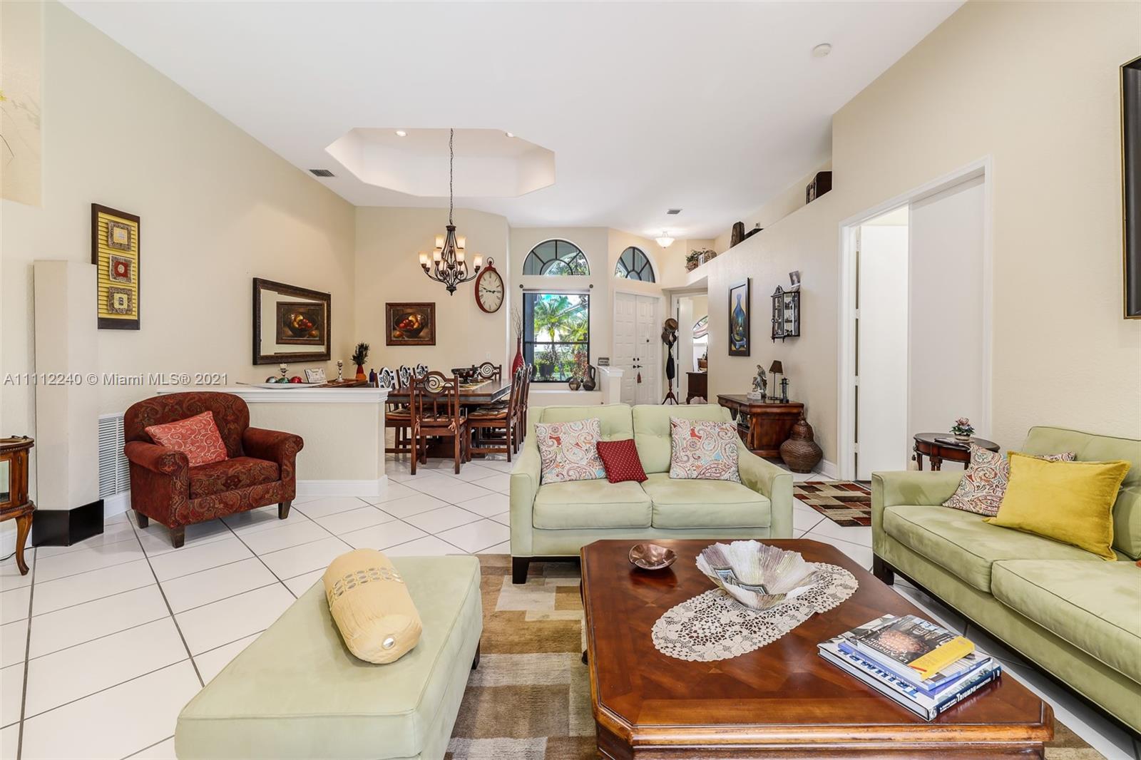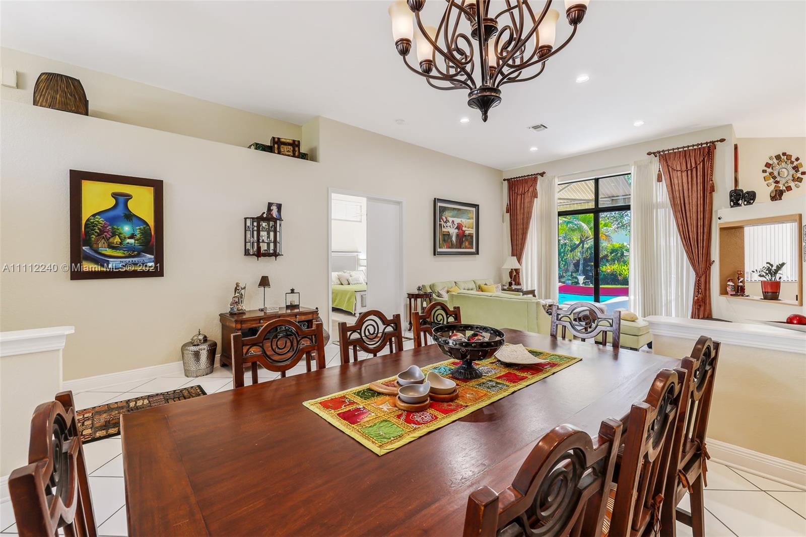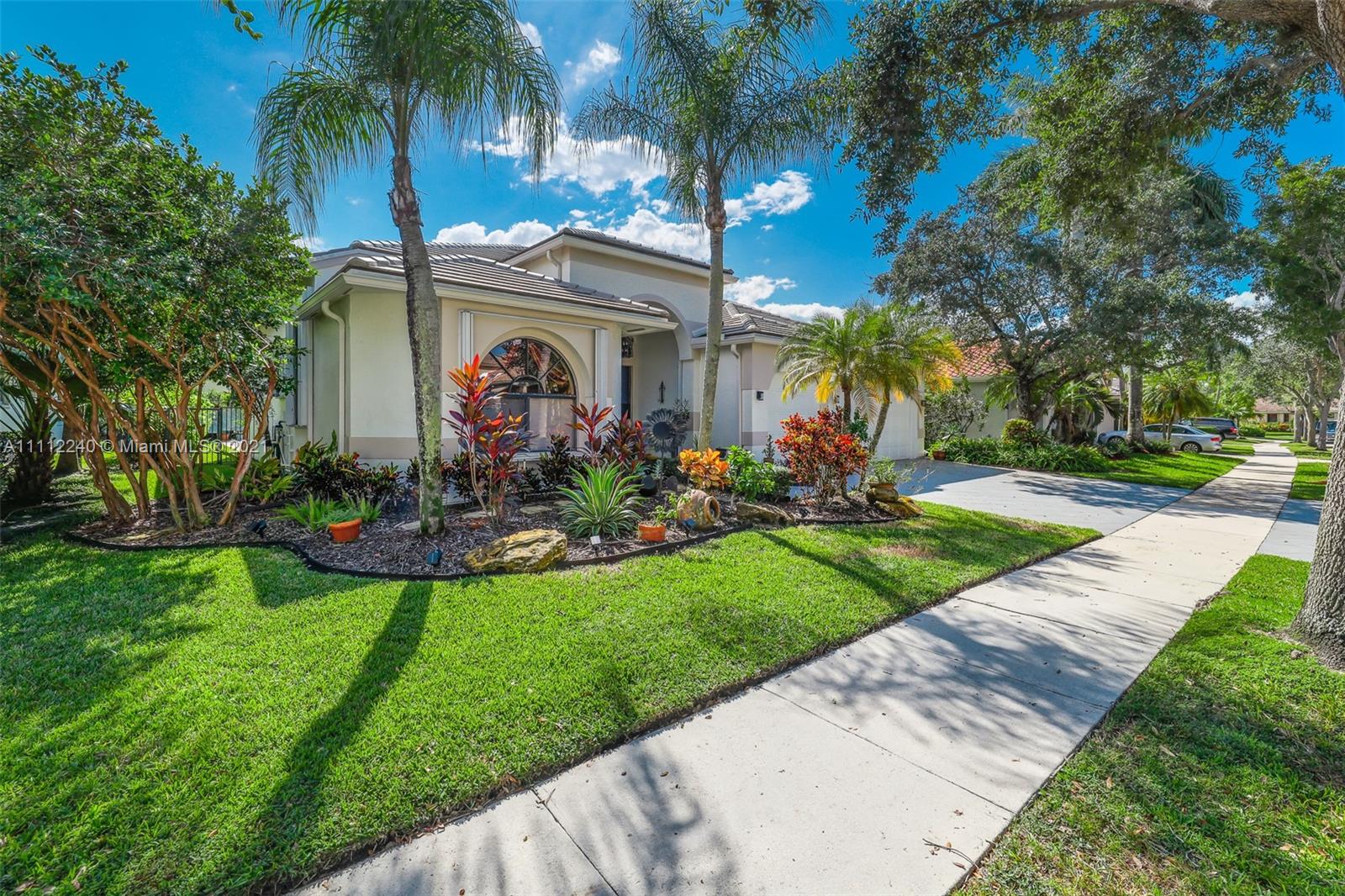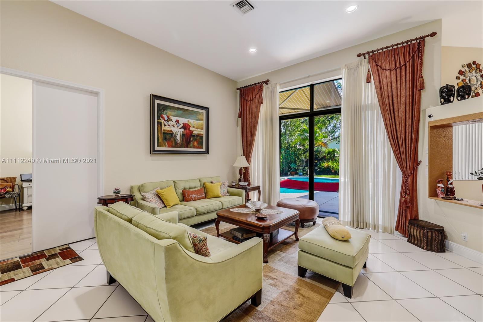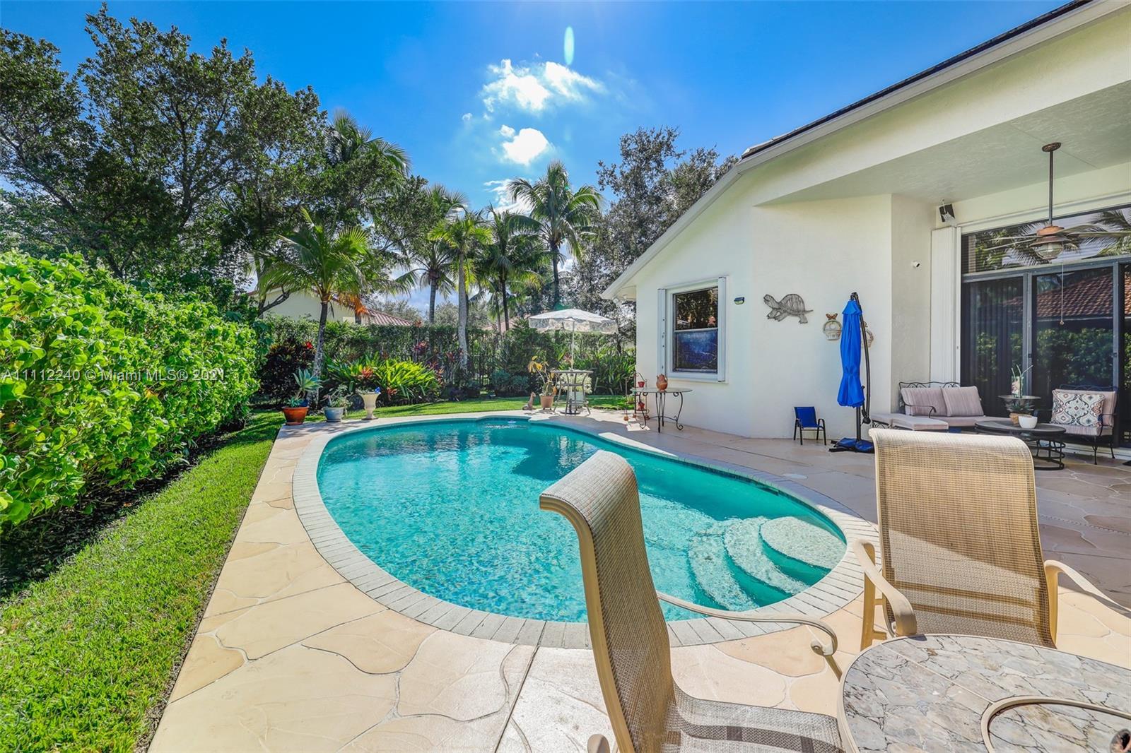 Elegant & turn-key one story in the exclusive gated Jasmine Island. This amazing 2,909 Sf living area home boasts 4 bedrooms + office that can be used as a 5th bedroom. 3 full baths, Pool, 3 car garage, accordion shutters. Spacious Master bedroom dble walk-in closet. Remodeled master bathroom (2021), dual sink. Open floor plan living/dining/kitchen w/wood cabinets, granite counter tops, stainless-steel appliances, & breakfast area. Laundry room under a/c. Wood laminate in bedrooms & tile in common areas. New custom baseboard. LED Recessed lighting w/dimmer. Recently painted. Auto sprinkler system. Large lot w/10,103 Sf, fenced & lushly landscape great for entertainment. Pool deck w/stamped concrete “A” Rated Schools District makes this property a great family home. New 2019 Roof.