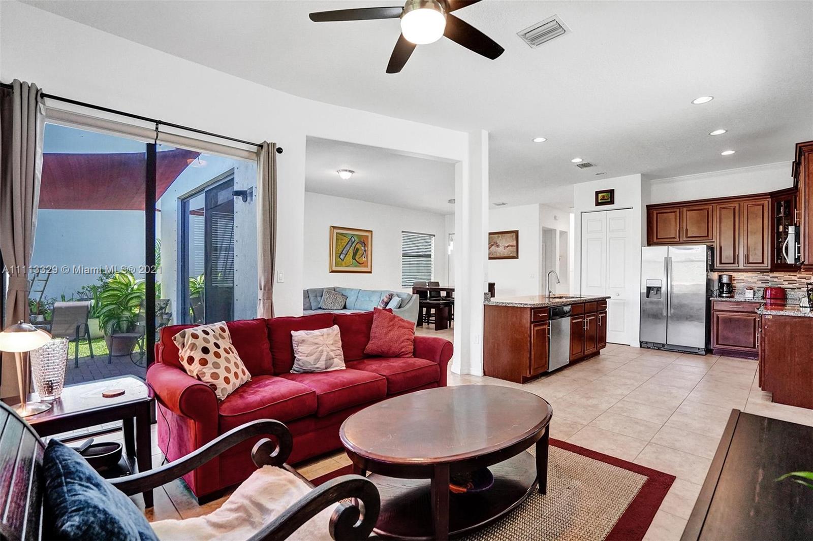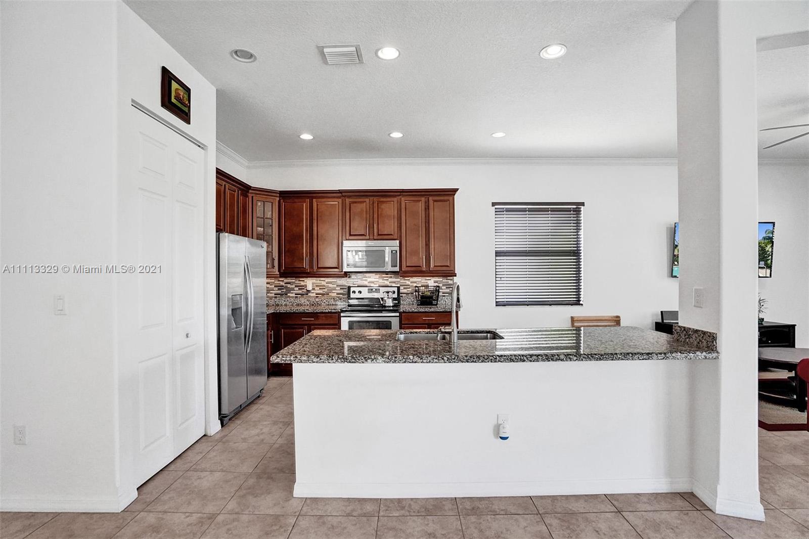 Gorgeous newer 2 story open concept home w/ a one car garage, paved driveway. Featuring 3 bedrooms & 2 bathrooms on the 2nd floor w/wood flooring, & laundry area, 1/2 guest bathroom on 1st floor, Upgraded Gourmet 42" wooden kitchen cabinets, stainless steel appliances, granite counter tops & gorgeous back splash for great & stylish look. Ceiling fans in 3 areas. Neutral tile throughout 1st floor. Heading to the backyard, a perfect place to host for gatherings, BBQ's, parties, playing or entertaining & if you just want to disconnect sit under the pergola, you will feel totally serene looking at the spectacular water view. Community features pool, cabana house, children play area, gated community, 24 hr security patrol... This home has lots of extra features. Come call this your home!!