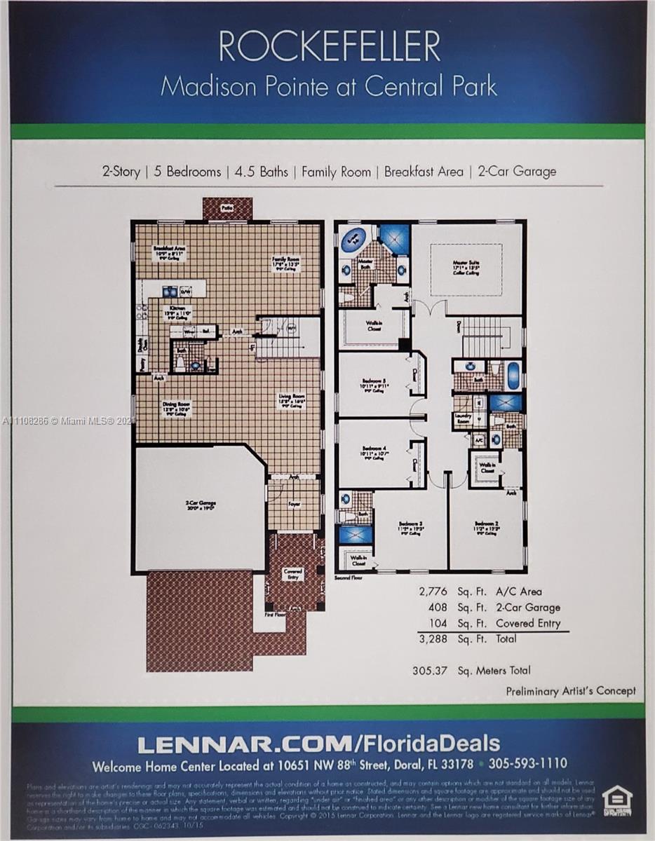 This beautiful two-story Single-Family home located in the prestigious guard gated community of Madison Pointe at Central Park. Spacious Living areas, high ceilings, impact windows and doors with modern shades, Open Kitchen with Wood Cabinets, SS Appliances, double oven and microwave, wine cooler, Breakfast area, Family Room give you access to a Beautiful covered terrace perfect for entertaining family and friends. Property featured 5 Bedroom and 4.5 Bathrooms, luxurious double door Master suite with huge walking closet, Master bathroom feature Roman tub, shower also his and hers Vanities. 2-Car Garage, Driveway, beautiful landscaping. Clubhouse offers resort style amenities, Spa, cabanas, Fitness Center, sauna, Kids play area, water parks, Tennis and Basketball Courts.